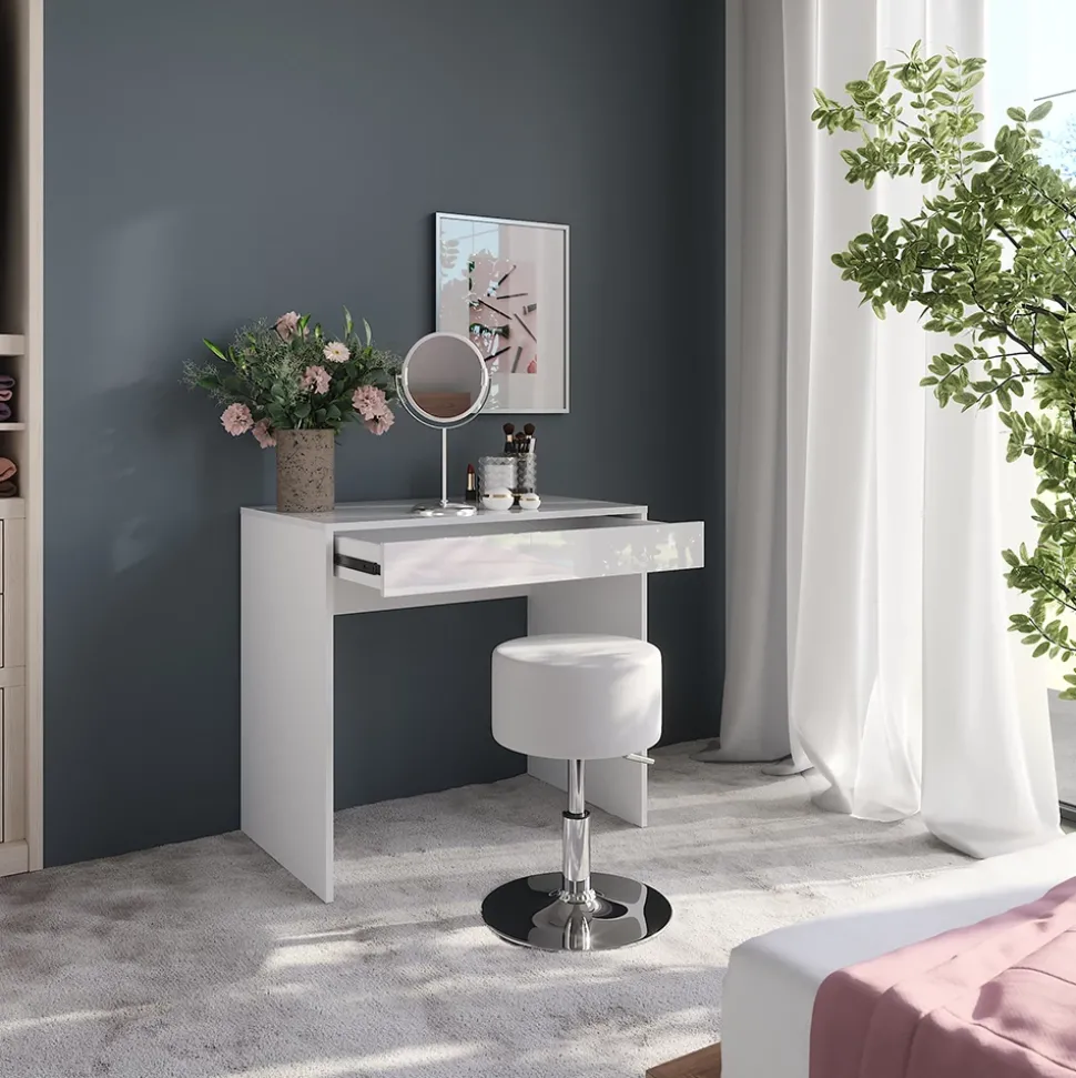 - MATERIAL: Der Schminktisch besteht aus pflegeleichter Spanplatte, Melaminharzbeschichtung.