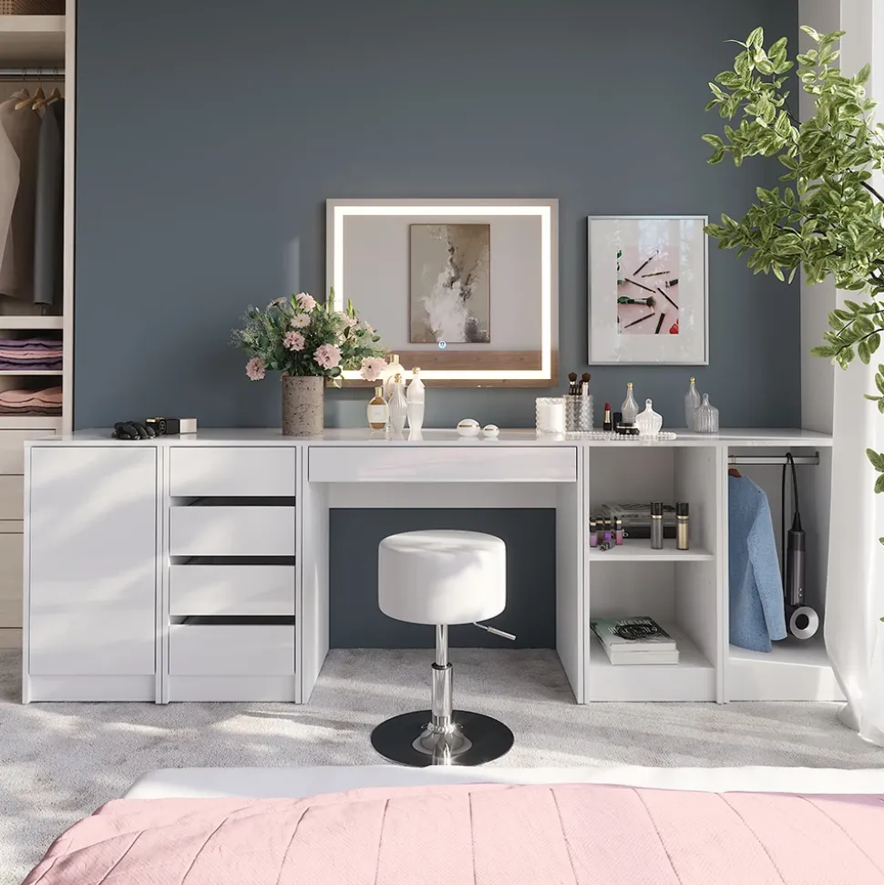 Der Schminktisch „Sherry“ vereint elegantes Design mit cleverer Funktionalität und wird im Handumdrehen zu deinem Lieblingsplatz. Ob modern, klassisch oder dezent – dank vielfältiger Kombinationsmöglichkeiten findest du genau die Variante, die wie für dich und dein Zuhause gemacht ist. „Sherry“ ist mehr als ein Möbelstück – er schenkt dir jeden Tag einen kleinen Wohlfühlmoment. Entdecke die Vielfalt und finde deinen persönlichen Traum-Frisiertisch, der Schönheit und Ordnung mit einem Hauch Luxus vereint.