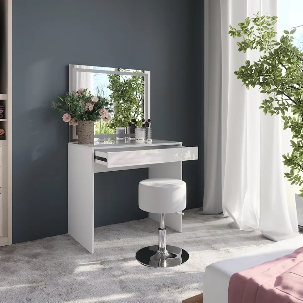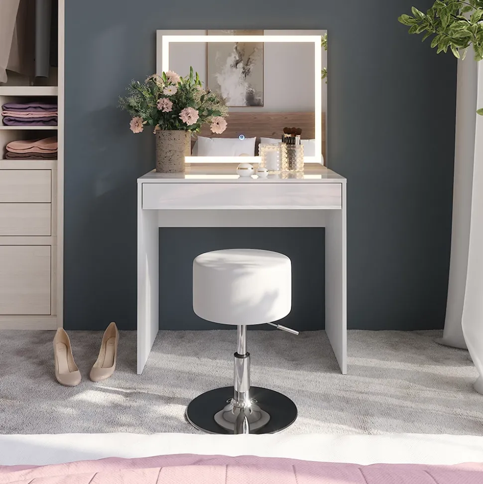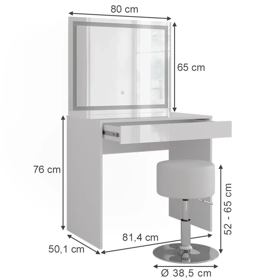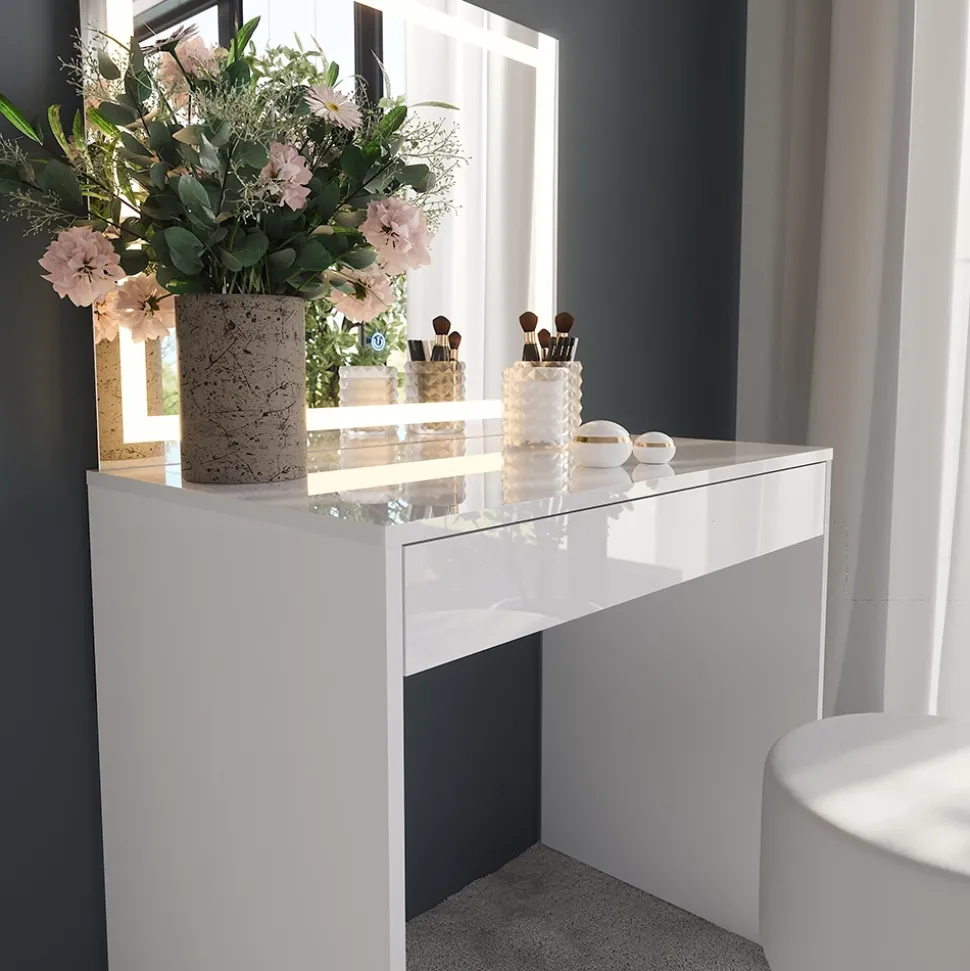 - Der elegante Schminktisch mit LED-Spiegel bietet dir perfektes Licht für dein Make-up. Die praktische Schublade hält deine Beauty-Produkte ordentlich und jederzeit griffbereit.