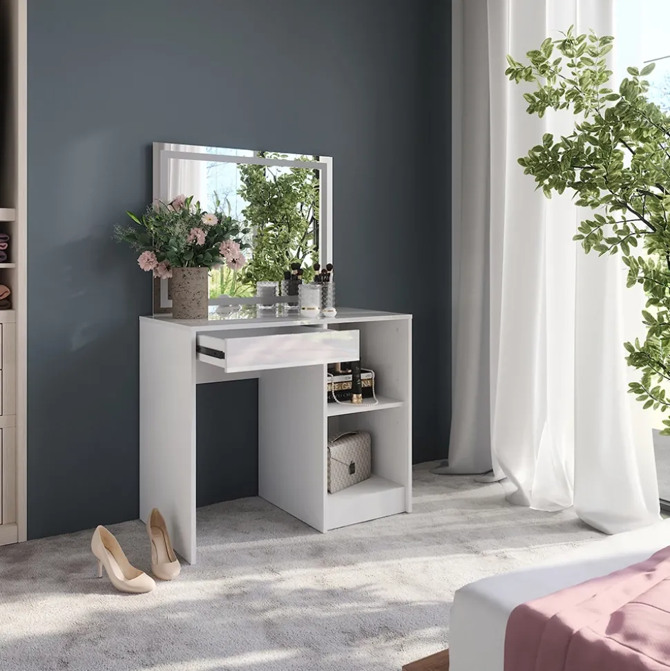 Der Schminktisch „Sherry“ vereint elegantes Design mit cleverer Funktionalität und wird im Handumdrehen zu deinem Lieblingsplatz. Ob modern, klassisch oder dezent – dank vielfältiger Kombinationsmöglichkeiten findest du genau die Variante, die wie für dich und dein Zuhause gemacht ist. „Sherry“ ist mehr als ein Möbelstück – er schenkt dir jeden Tag einen kleinen Wohlfühlmoment. Entdecke die Vielfalt und finde deinen persönlichen Traum-Frisiertisch, der Schönheit und Ordnung mit einem Hauch Luxus vereint.