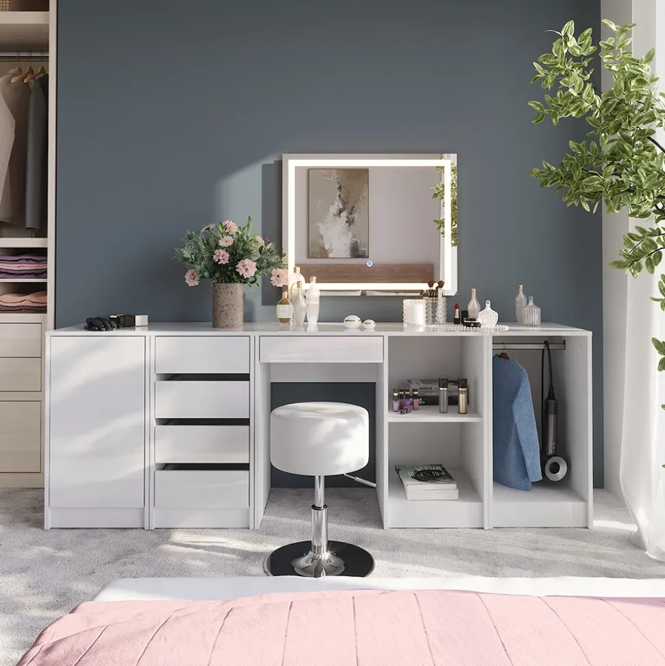 - MAßE: Der Frisiertisch besteht aus mehreren Teilen, alle detaillierten Maße findest du in den Produktfotos.
