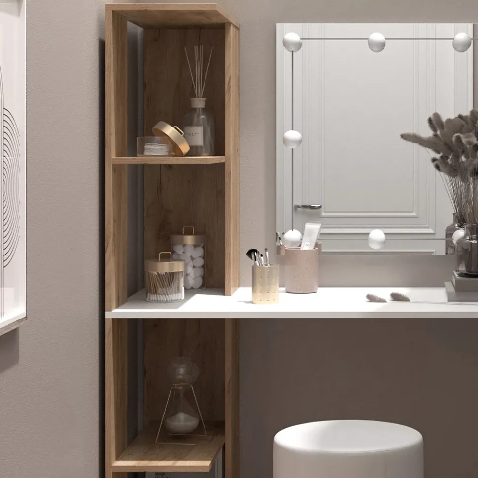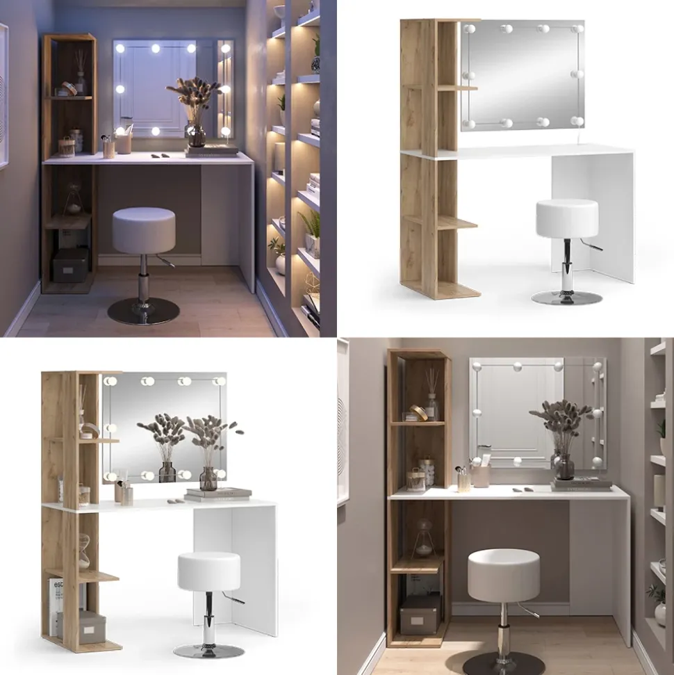 Dieser Schminktisch ist mehr als nur ein Möbelstück – er ist eine Inspiration für alle Frauen, die ihre Schönheit lieben und schätzen. Mit seinem originellen Design und dem praktischen Seitenregal mit vier Fächern ist diese Frisierkommode ideal für kleine Räume. Er bietet einen bequemen Schminkplatz und ein Maximum an Stauraum, um all Ihre Kosmetikartikel ordentlich aufzubewahren. Der Schminktisch passt gut zu anderen Möbelstücken und wird Sie immer wieder begeistern. Mit Tower können Sie sich perfekt auf Ihr Make-Up konzentrieren und Ihre Schönheit voll entfalten.