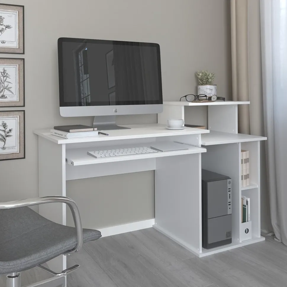 - Der Arbeitstisch für das Büro bietet eine Systemeinheit-Regal, eine ausziehbare Tastaturablage und einen bequemen Arbeitsplatz. Ideal für produktive Arbeitstage.