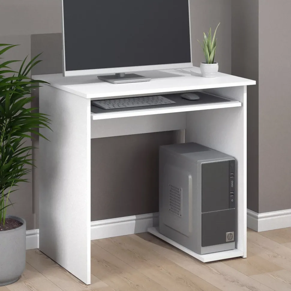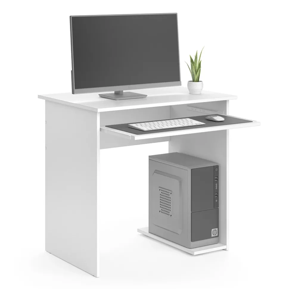 - Der Arbeitstisch für das Büro ist ideal für kleine Räume, da er eine ausziehbare Tastaturablage und Platz für eine Systemeinheit bietet.