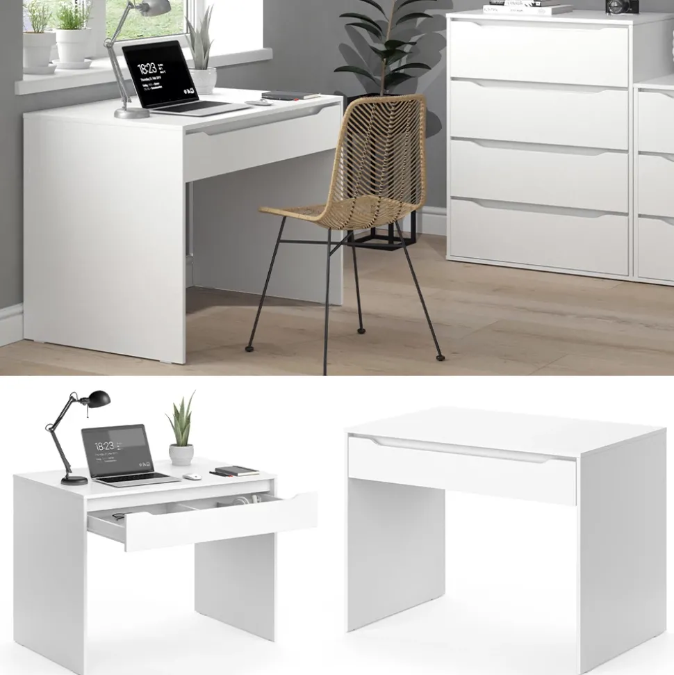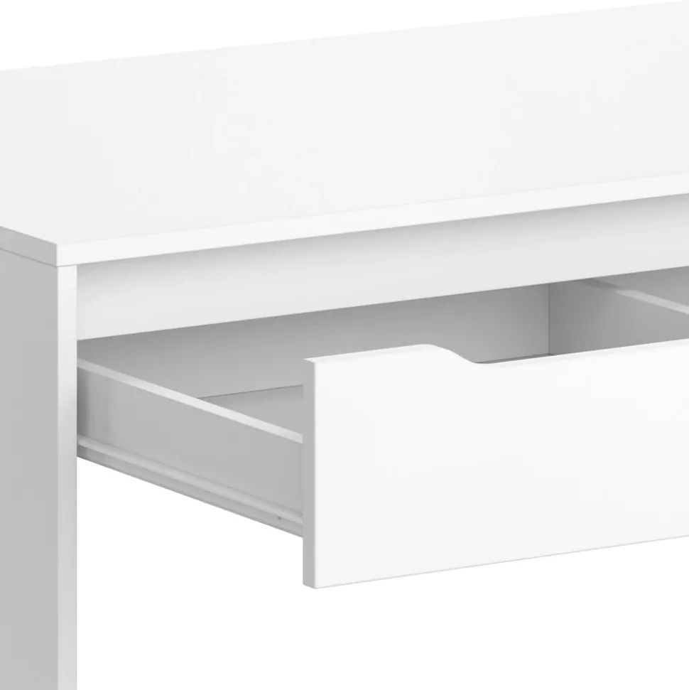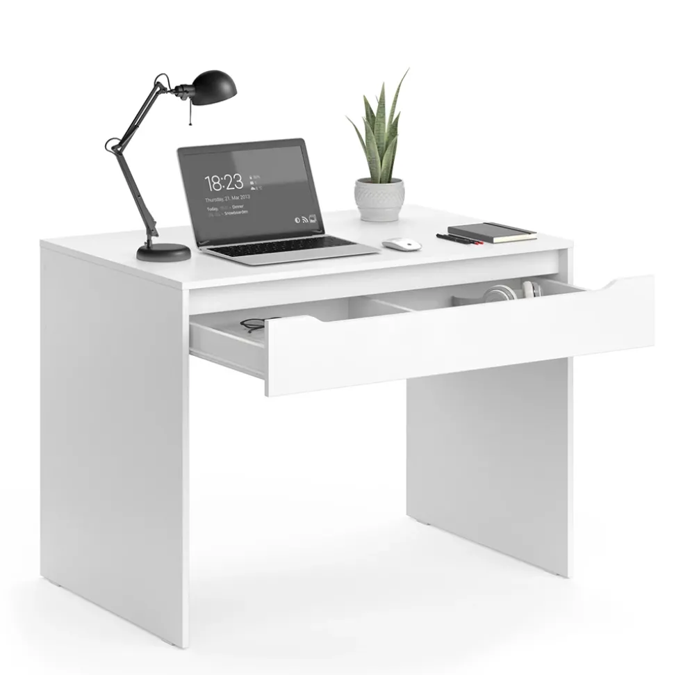 - Der Arbeitstisch für das Büro ist platzsparend und eignet sich ideal für kleine Räume. Mit einer ausziehbaren Schublade bietet er zudem zusätzlichen Stauraum.
