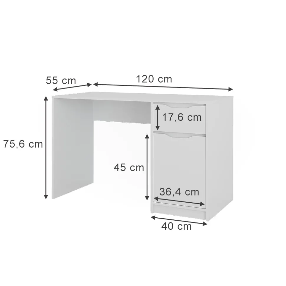 - MAßE: Der Bürotisch mit Schublade hat eine Tiefe von 55 cm, eine Breite von 120 cm und eine Höhe von 75,6 cm. Alle detaillierten Größen sind auf den Fotos angegeben.