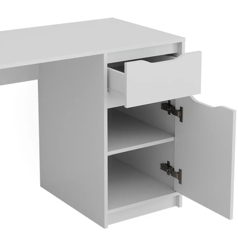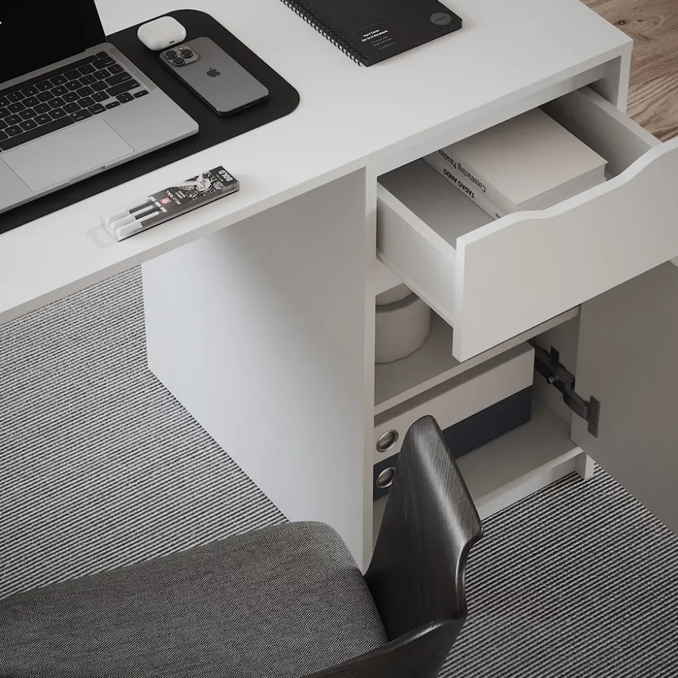 - Der Arbeitstisch für das Büro verfügt über eine ausziehbare Schublade und ein geschlossenes Fach für zusätzlichen Stauraum. Der Arbeitsplatz ist komfortabel und ideal für den täglichen Gebrauch.