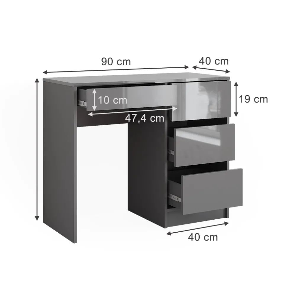 - MAßE: Der Bürotisch mit Stauraum, mit Schubladen hat folgende Abmessungen: Tiefe 40 cm, Breite 90 cm und Höhe 75 cm. Alle detaillierten Maße sind auf den Fotos angegeben.