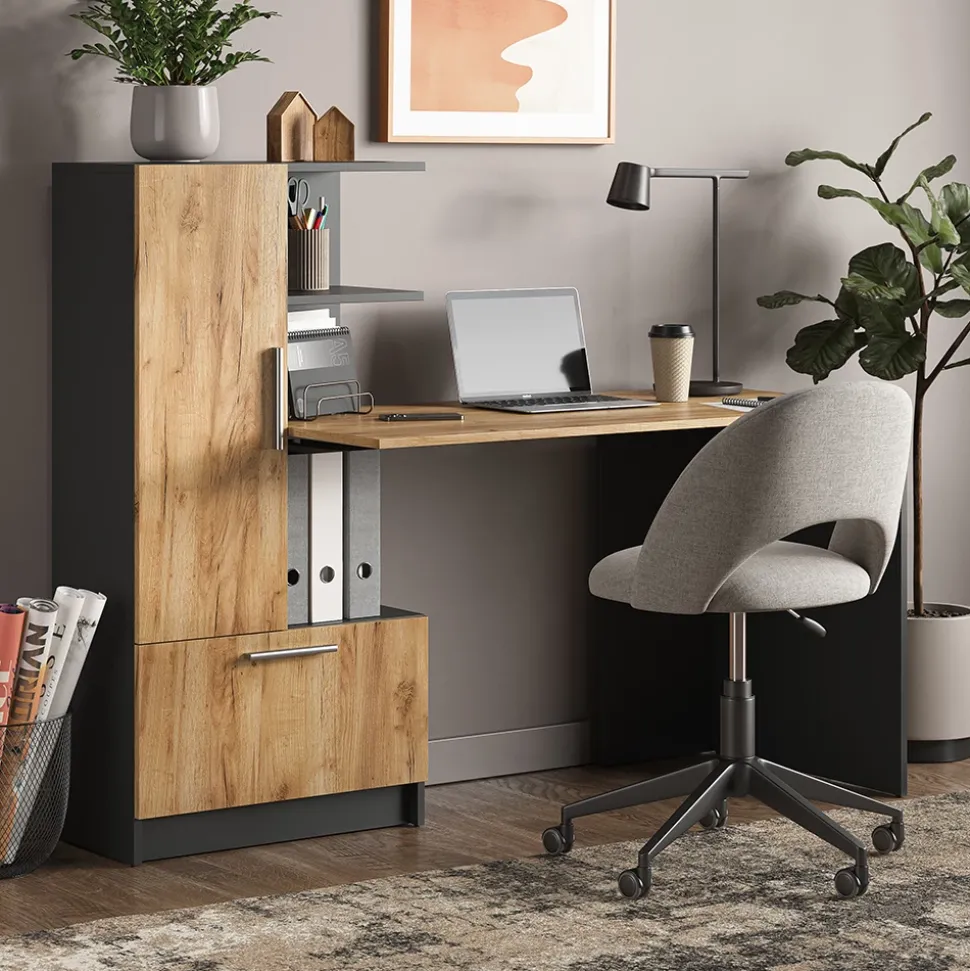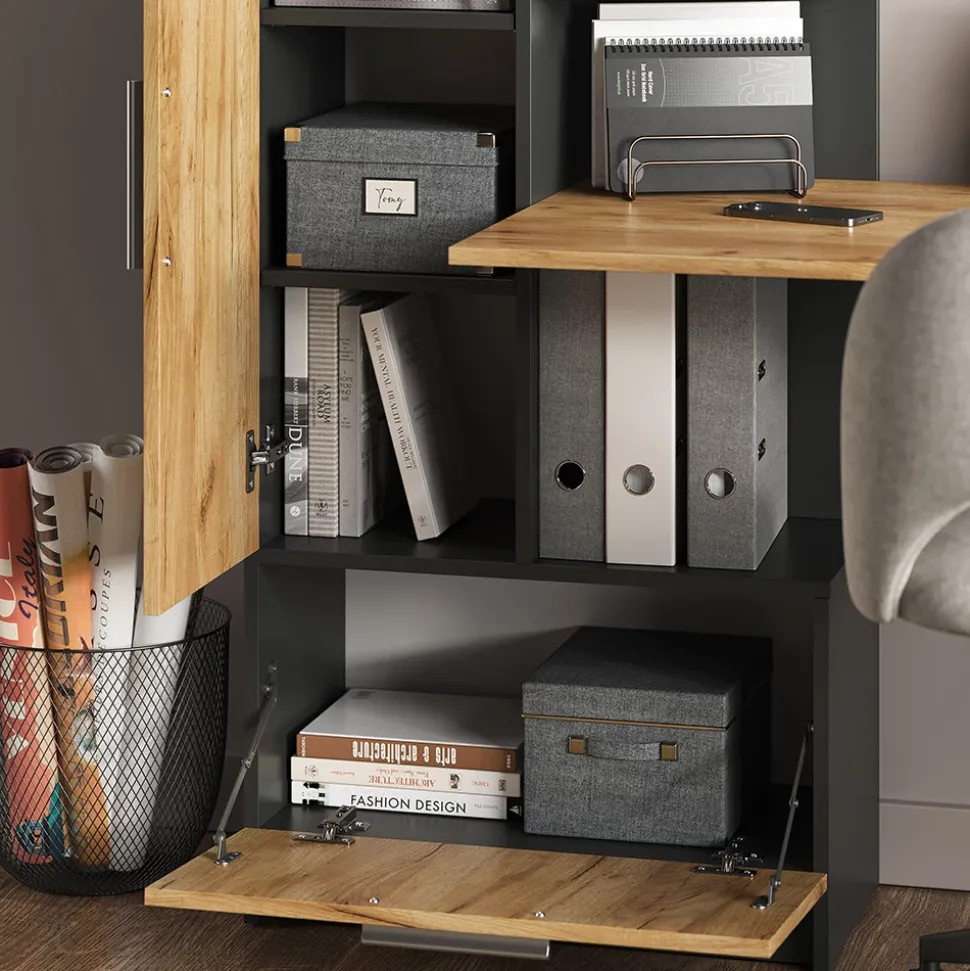 Die Möbelserie „Tomy“ umfasst Schreibtische mit Regalen in verschiedenen Farbkombinationen. Mit ihrer praktischen Gestaltung und der Auswahl an Farben bietet die Serie „Tomy“ funktionale Arbeitsplätze für Ihr Homeoffice oder Ihren Arbeitsbereich.