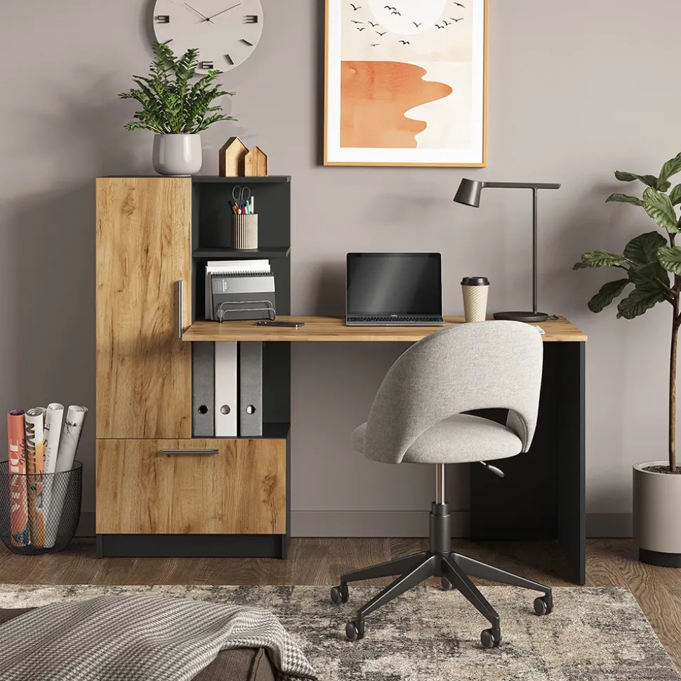 Der Tomy Schreibtisch ist ein vielseitiger Bürotisch, der sowohl für das Homeoffice als auch für das Büro geeignet ist. Mit seinem funktionellen Design und den offenen und geschlossenen Ablageflächen bietet er reichlich Stauraum, um Ihre Arbeitsunterlagen, Bücher und sonstige Gegenstände ordentlich zu verstauen. Der PC-Tisch ist perfekt für alle, die einen bequemen Arbeitsplatz benötigen und dabei nicht auf Style verzichten möchten. Dieses Modell ist Teil der Tomy-Linie, die verschiedene Optionen bietet, um Ihren Arbeitsbereich individuell zu gestalten. Erleben Sie die perfekte Kombination aus modernem Design und praktischer Funktion – Der Tomy Schreibtisch ist die ideale Wahl für Ihren Arbeitsplatz!