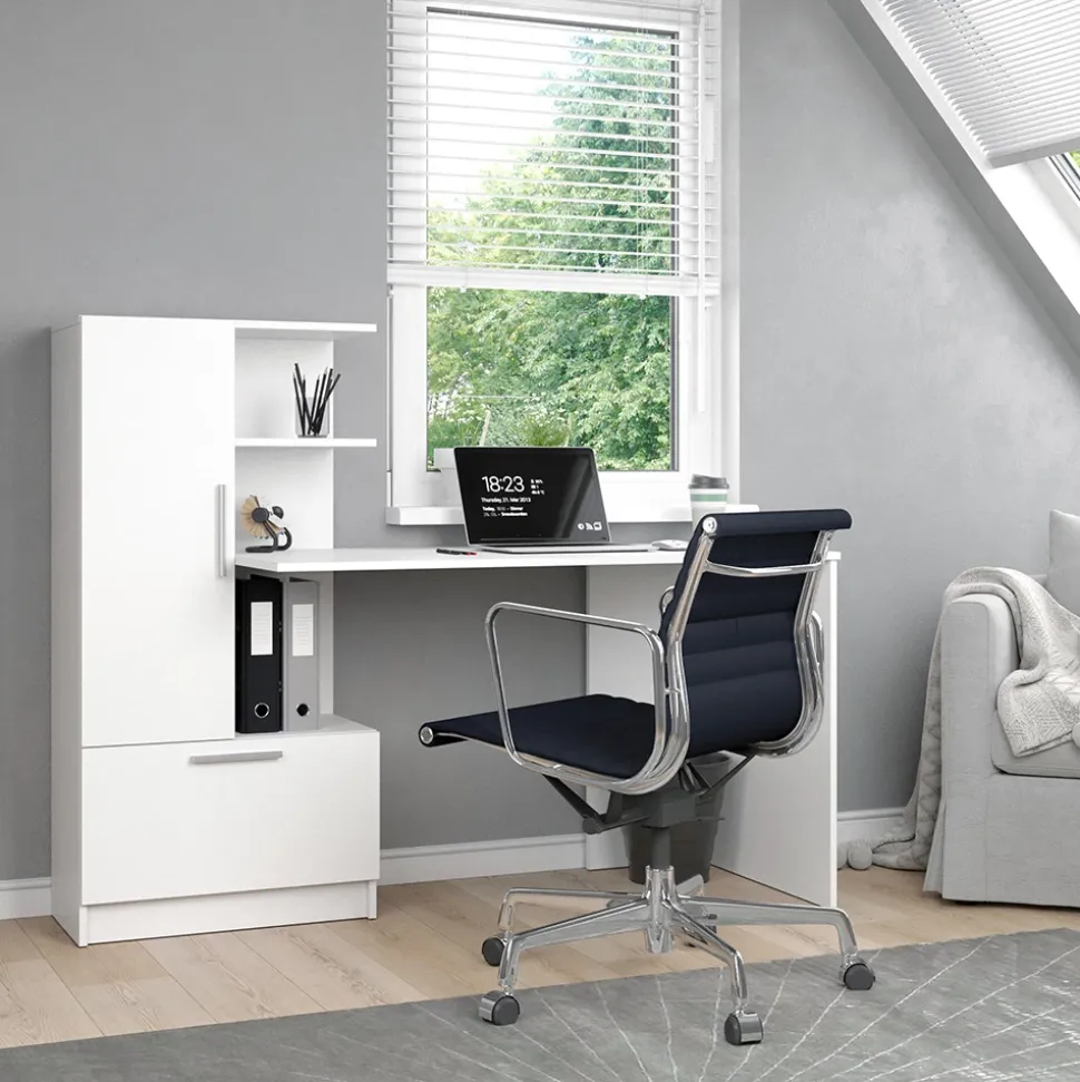 - Der Arbeitstisch für das Büro bietet mit offenen und geschlossenen Ablageflächen reichlich Stauraum. Ein bequemer Arbeitsplatz wird durch das Design garantiert.