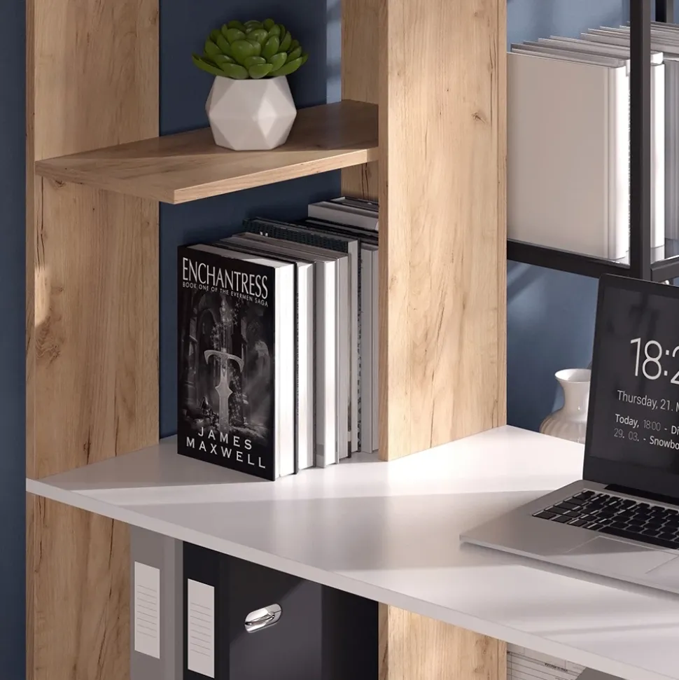 Der Schreibtisch Tower ist der perfekte Arbeitsplatz für das moderne Büro. Mit seinem originellen und eleganten Design ist er nicht nur funktional, sondern auch eine Bereicherung für jede Raumgestaltung. Der PC-Tisch bietet ausreichend Stauraum dank praktischem Seitenregal mit 4 Fächern, das ideal für kleine Räume ist. Der bequeme Arbeitsplatz sorgt dafür, dass Sie den ganzen Tag effizient arbeiten können. Der Tower – Schreibtisch passt perfekt zu anderen Möbelstücken und ist ein atemberaubendes Highlight in jedem Büro. Bestellen Sie heute noch den Tower – Schreibtisch und erleben Sie, wie Ihre Produktivität und Kreativität aufblühen!