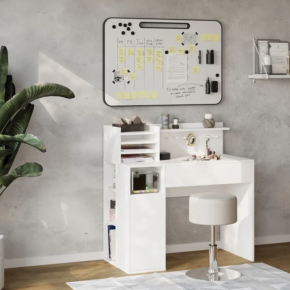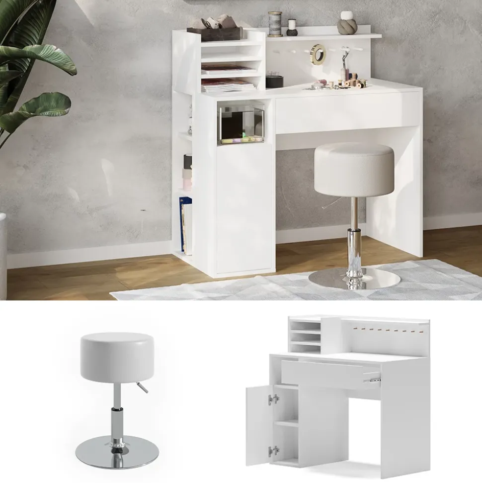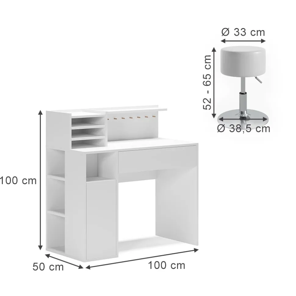 - Dieser Computertisch mit Schubladen und der Hocker ist eine gute Entscheidung für jedes Zuhause. Sein optimales Design und stilvolles Aussehen machen ihn universell für jede Wohnung.