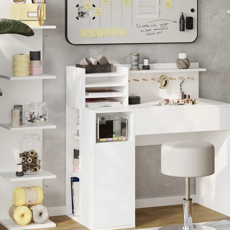 - MAßE: Das Schreibtisch Set hat 3 Teile und die detaillierten Größen sind auf den Fotos angegeben.