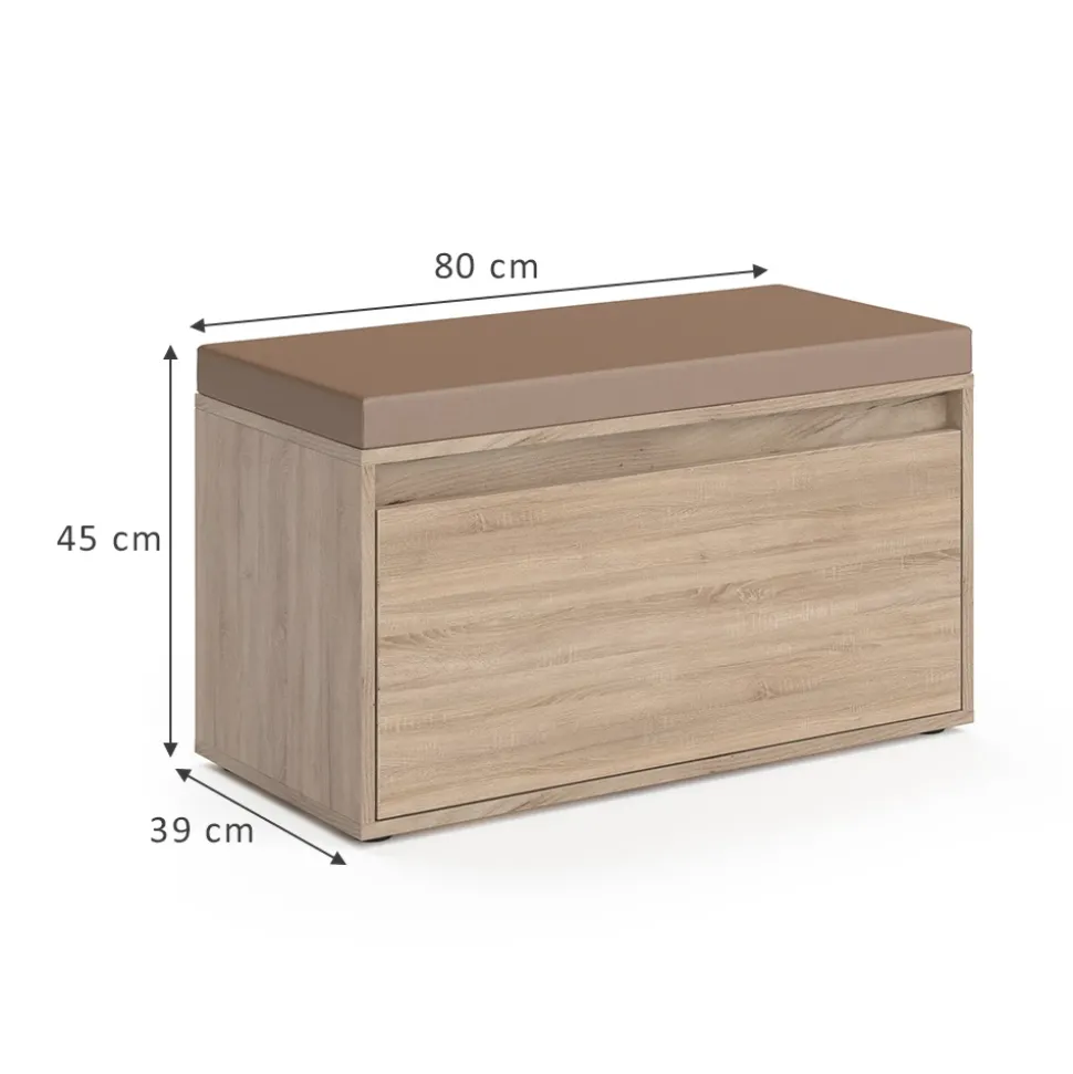 - MAßE: Der Schuhschrank mit Sitzbank hat eine Breite von 80 cm, eine Höhe von 45 cm und eine Tiefe von 39 cm. Alle detaillierten Größen sind auf den Fotos angegeben.