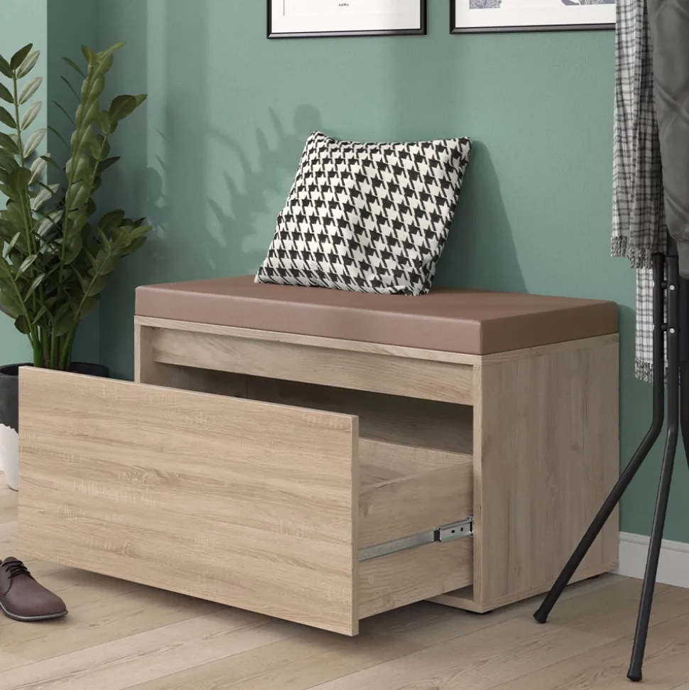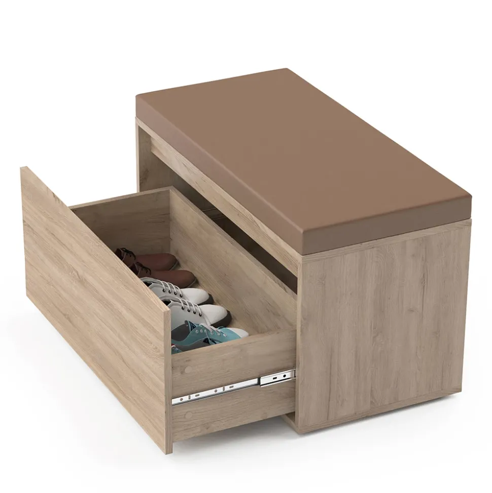 - Die Sitzbank mit Stauraum bietet neben einem gepolsterten Sitz auch eine ausziehbare Schublade für platzsparendes Verstauen.
