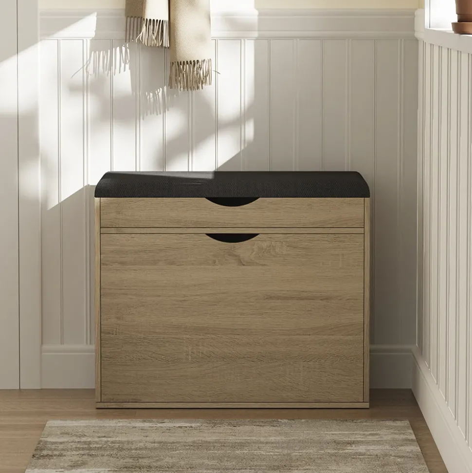 - MATERIAL: Dieser Schrank für die Schuhe besteht aus pflegeleichtem MDF; die Sitzfläche ist aus Polyurethanschaum mit Polyesterbezug – bequem und leicht zu reinigen.