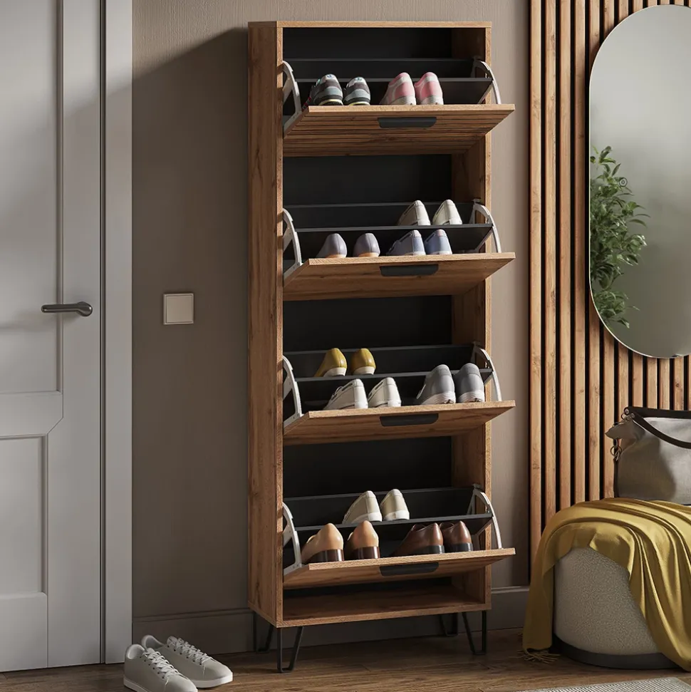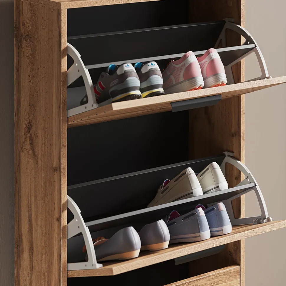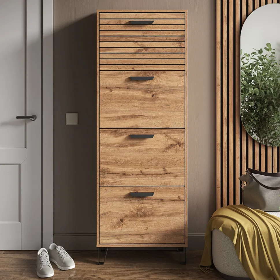 - Die Schuhkommode „Amber“ ist die optimale Lösung für jede Wohnung, um Ihre Schuhe stilvoll und ordentlich aufzubewahren. Mit ihrem universellen Design passt sie perfekt in jeden Raum.