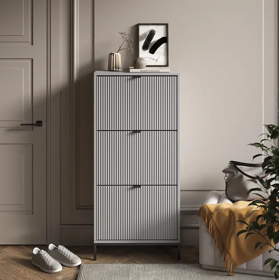 Der Schuhkipper Eliza ist der perfekte Begleiter für alle Schuhliebhaber! Mit seinen 3 geräumigen Fächern bietet er ausreichend Stauraum für Ihre Lieblingsschuhe und sorgt gleichzeitig für Ordnung im Flur. Das moderne Design des Schuhregals fügt sich nahtlos in jeden Einrichtungsstil ein und lässt sich hervorragend mit anderen Möbelstücken der Eliza-Serie kombinieren. Platzsparend und praktisch, ist der Schuhkipper nicht nur funktional, sondern auch ein echter Hingucker in Ihrem Zuhause. Bringen Sie mit dem Schuhkipper Eliza Ihre Schuhsammlung stilvoll unter und verleihen Sie Ihrem Flur einen Hauch von Eleganz.