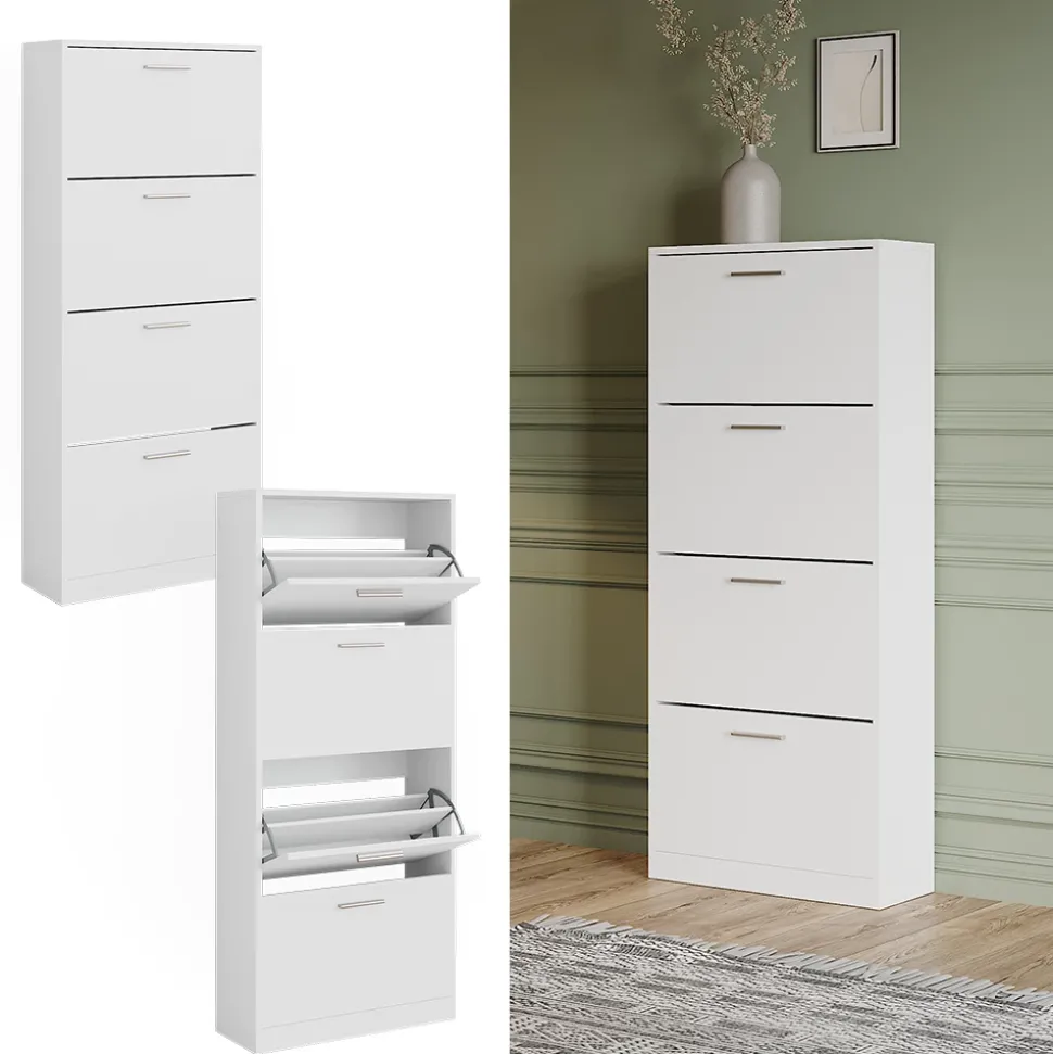 - Das Schuhregal verfügt über 4 klappbare Schuhfächer, die reichlich Stauraum bieten und dabei platzsparend sind. Ideal für eine ordentliche und praktische Aufbewahrung Ihrer Schuhe.