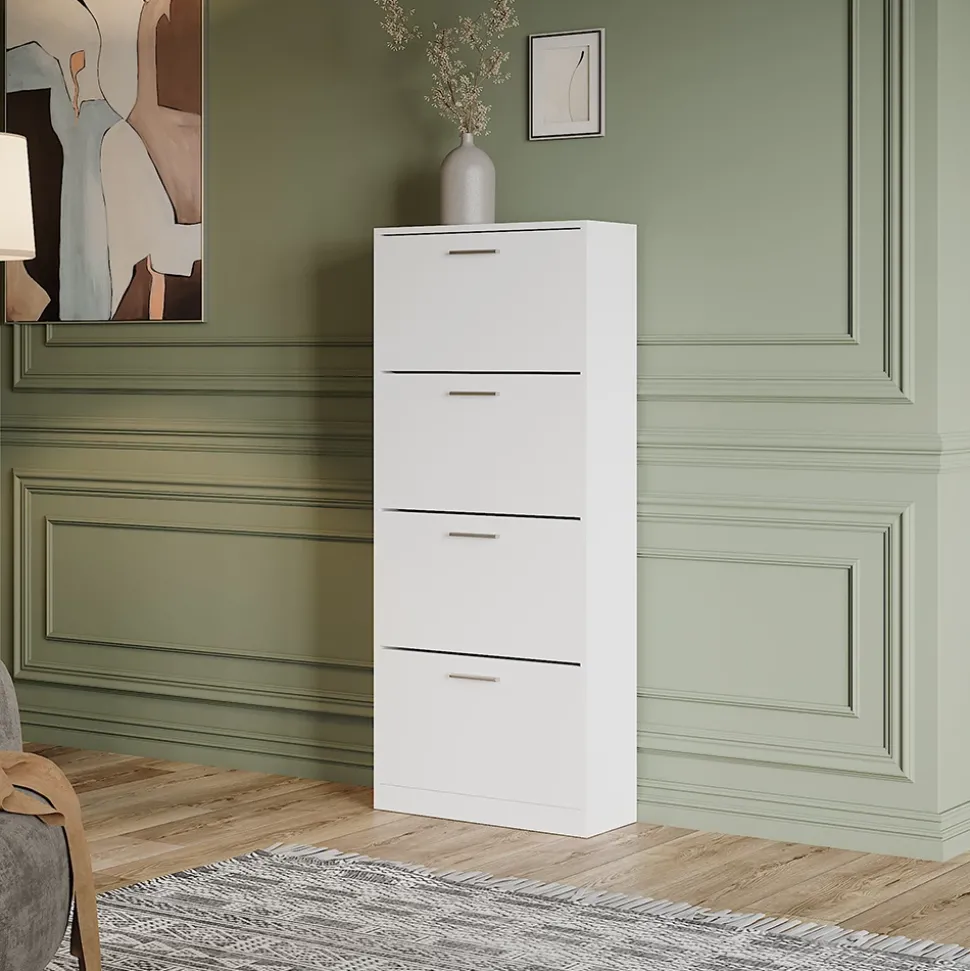 Der Schuhkipper „Gizmo“ ist die perfekte Lösung für alle, die ihren Flur ordentlich und stilvoll gestalten möchten. Mit seinem modernen Design passt er zu jedem Einrichtungsstil und bietet dank der 4 klappbaren Schuhrfächern reichlich Stauraum für all Ihre Schuhe. Die Schuhkommode ist nicht nur platzsparend, sondern auch kompatibel mit anderen Artikeln der Gizmo Collection.Bringen Sie Ordnung in Ihren Flur und erleichtern Sie sich das Leben mit dem praktischen und stilvollen Schuhschrank.