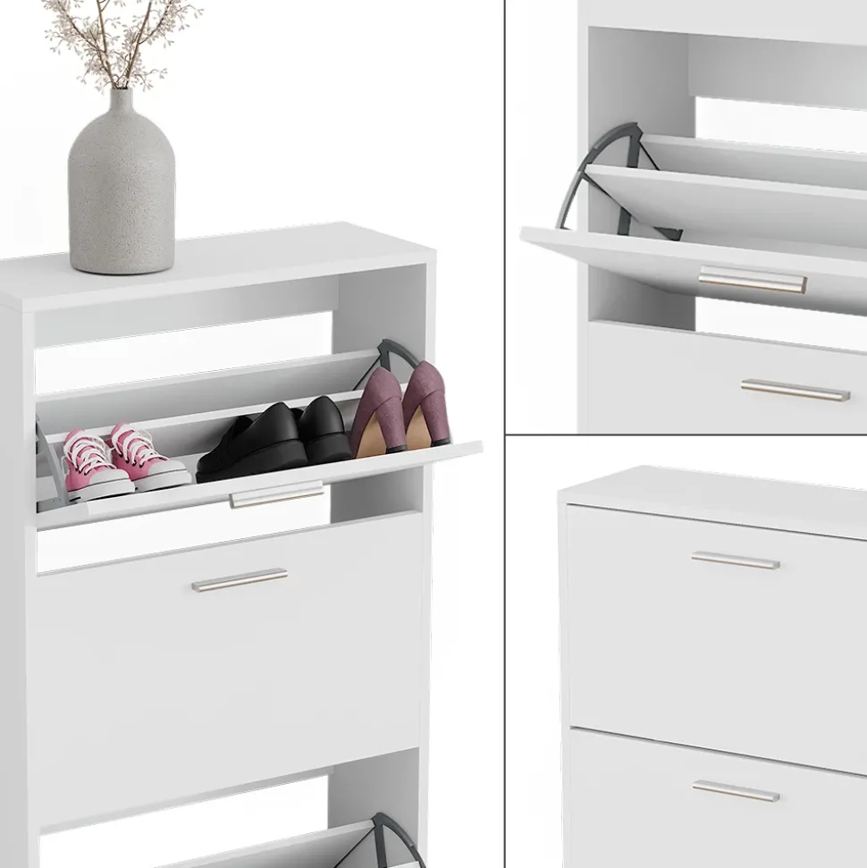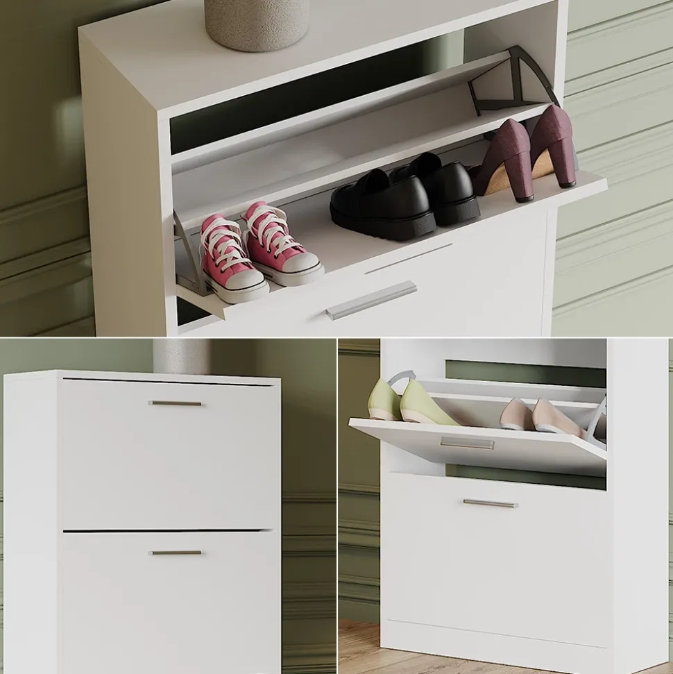 - MATERIAL: Der Schuhkipper besteht aus pflegeleichter, melaminharzbeschichteter 16 mm Spanplatte.