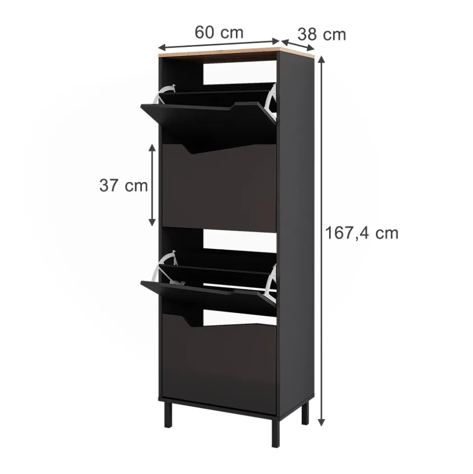 - MAßE: Der Schuhschrank hat folgende Maße: Tiefe: 38 cm, Breite: 60 cm, Höhe: 167,4 cm