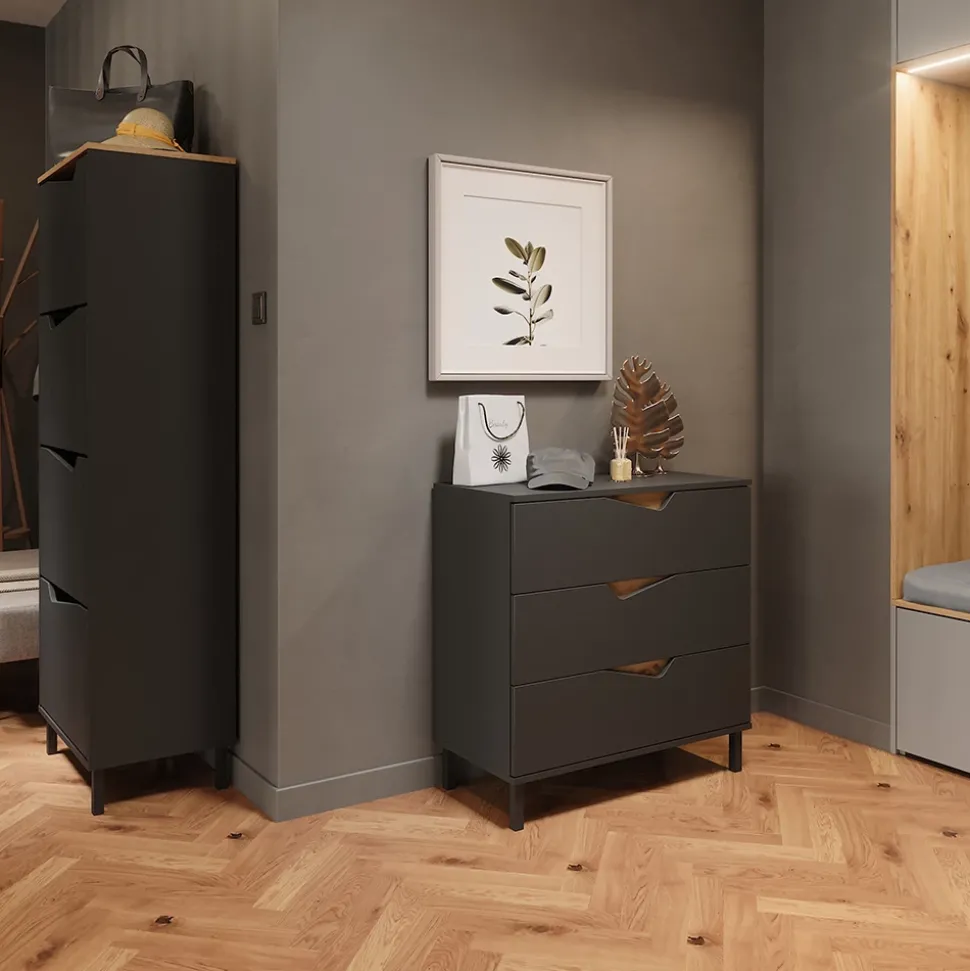 - Die Schuhkommode „Marelle“ ist die optimale Lösung für jede Wohnung, um Schuhe stilvoll und ordentlich aufzubewahren.
