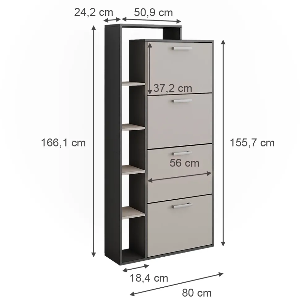 - MAßE: Der Schuhschrank hat 4 Fächer und die detaillierten Größen sind wie folgt: Tiefe: 24,2 cm, Breite: 80 cm, Höhe: 166,1 cm. Alle detaillierten Größen sind auf den Fotos angegeben.