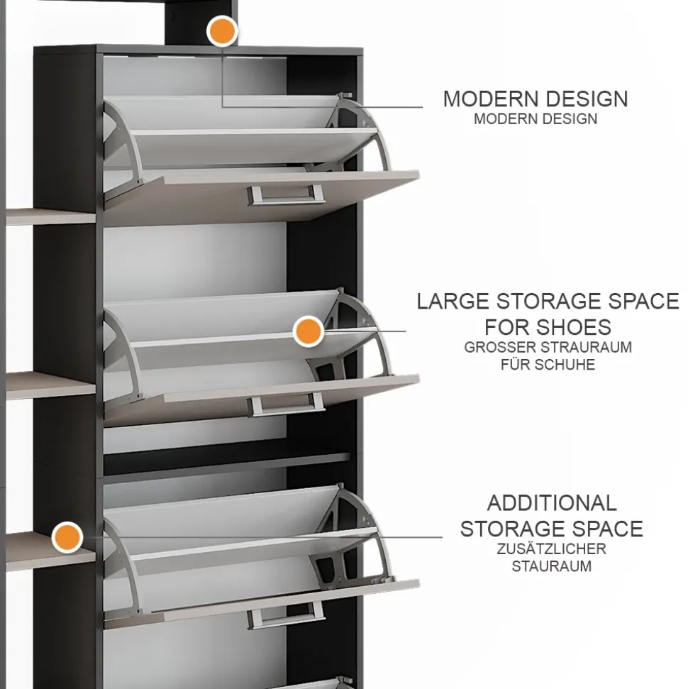 Mit dem Schuhkipper Orlando bekommen Sie nicht nur einen praktischen Schuhschrank für Ihren Flur, sondern auch ein modernes Möbelstück, das Ihr Zuhause aufwertet. Nie wieder chaotische Schuhberge im Eingangsbereich! Der Schuhkipper bietet genug Platz für all Ihre Lieblingsschuhe und sorgt für Ordnung und Übersichtlichkeit. Gönnen Sie sich dieses funktionale und stilvolle Möbelstück und machen Sie Ihren Flur zu einem einladenden und aufgeräumten Bereich in Ihrem Zuhause. Der Schuhkipper Orlando – ein Must-have für jeden, der Wert auf praktische Lösungen und Ästhetik legt!