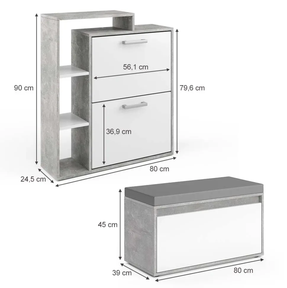 - MAßE: Das Schuhschrank Set hat 2 Teile und die detaillierten Größen sind auf den Fotos angegeben.