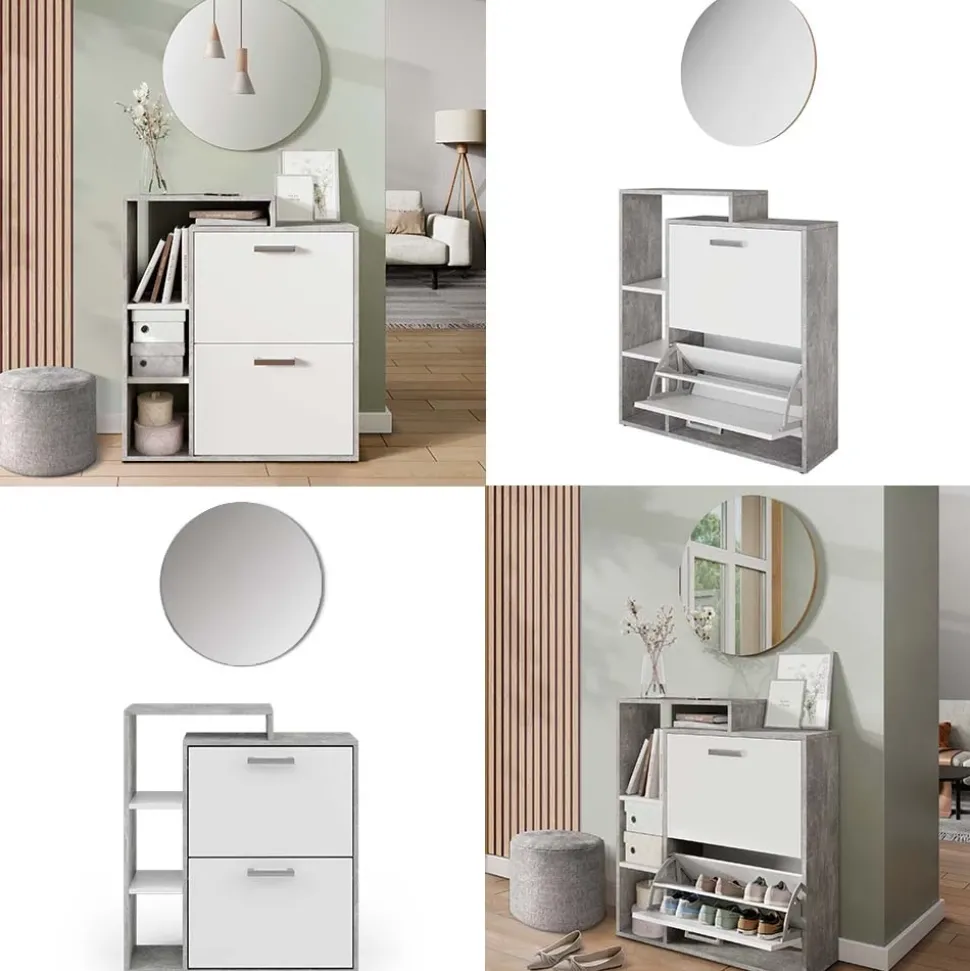 Mit dem Schuhkipper Orlando bleibt der Flur immer ordentlich. Der moderne Stil des Schuhschranks passt perfekt zu jeder Einrichtung und bietet reichlich Stauraum für Schuhe aller Art. Die beiden klappbaren Schuhregale. Der runde Spiegel an der Front gibt dem Flur eine besondere Note und lässt ihn zudem optisch größer wirken. Der Schuhkipper Orlando lässt sich zudem perfekt mit anderen Artikeln der Kollektion kombinieren. Gönnen Sie sich diesen Hingucker für Ihren Flur.