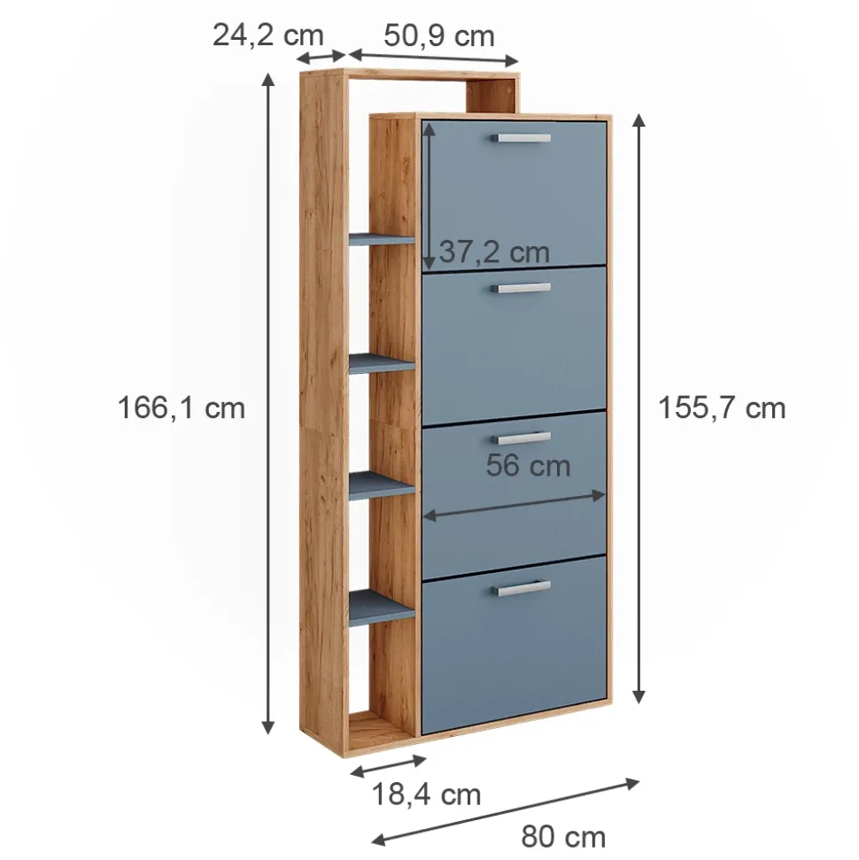 - MAßE: Der Schuhschrank hat 4 Fächer und die detaillierten Größen sind wie folgt: Tiefe: 24,2 cm, Breite: 80 cm, Höhe: 166,1 cm. Alle detaillierten Größen sind auf den Fotos angegeben.