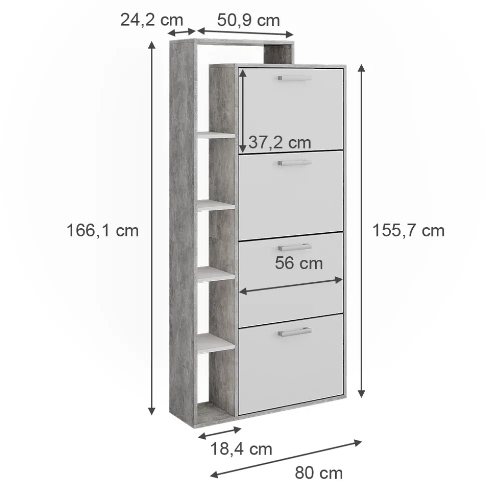 - MAßE: Der Schuhschrank hat 4 Fächer und die detaillierten Größen sind wie folgt: Tiefe: 24,2 cm, Breite: 80 cm, Höhe: 166,1 cm. Alle detaillierten Größen sind auf den Fotos angegeben.