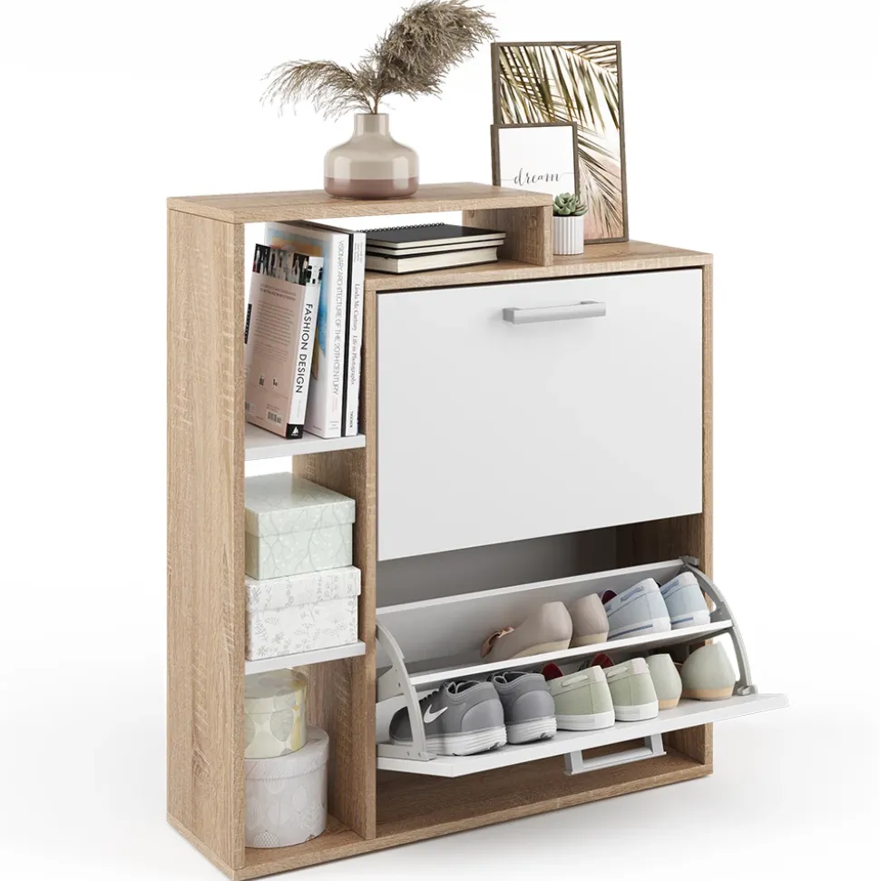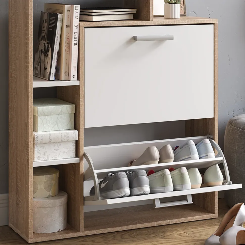 - Das Schuhregal bietet mit seinen zwei klappbaren und offenen Regalen genug Platz für Ihre Schuhsammlung.