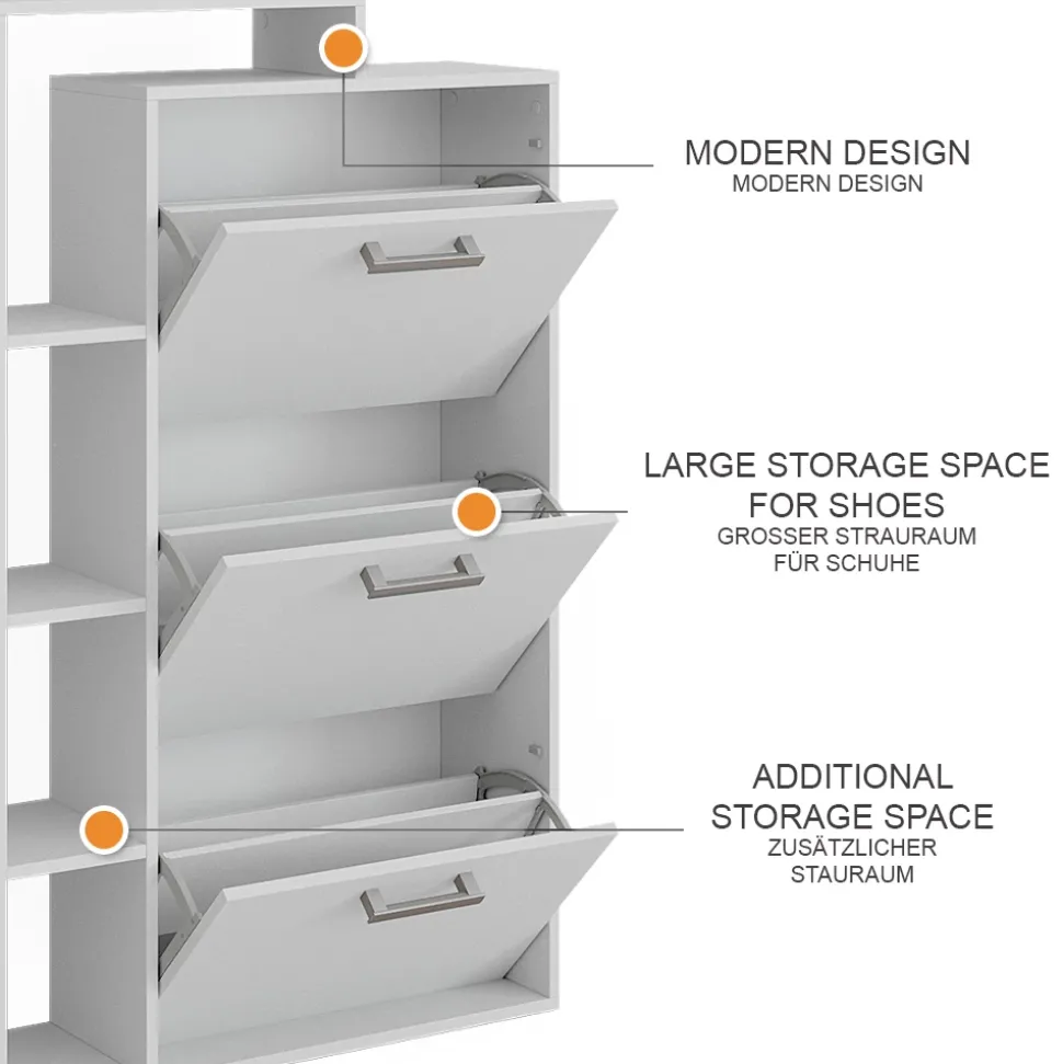 - Unsere Schuhkommode Orlando ist die perfekte Lösung für all Ihre Schuh-Aufbewahrungsprobleme. Mit ihrem stilvollen Aussehen und ihrem universellen Design passt sie in jede Wohnung