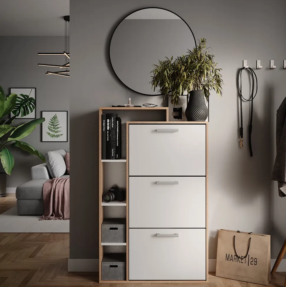 Der Orlando – Schuhkipper ist perfekt für alle, die auf der Suche nach einem funktionalen und platzsparenden Schuhschrank sind. Mit seinen offenen Ablagen bietet er viel Stauraum und dank der drei klappbaren Fächer können Sie viele Paar Schuhe unterbringen. Das funktionelle Design des Orlando – Schuhkipper ist auch mit anderen Artikeln der Kollektion kompatibel und passt sich somit perfekt an Ihr Zuhause an. Mit diesem Schuhkipper haben Sie immer alle Schuhe griffbereit und sorgen für Ordnung im Flur. Investieren Sie in den Orlando – Schuhkipper und sparen Sie Zeit und Nerven bei der Suche nach den passenden Schuhen.