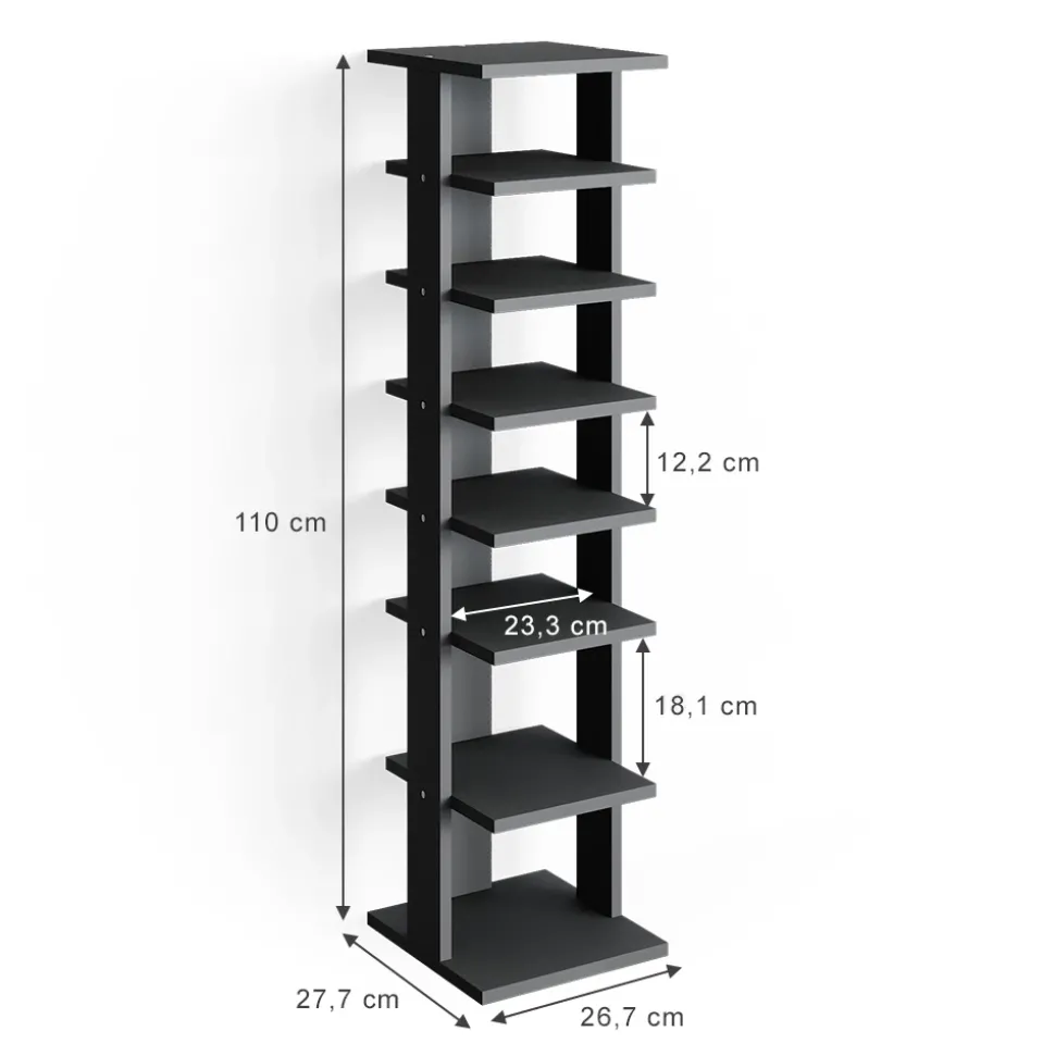 - MAßE: Das Schuhregal hat eine Breite von 26,7 cm, eine Höhe von 110 cm und eine Tiefe von 27,7 cm. Alle detaillierten Größen sind auf den Fotos angegeben.