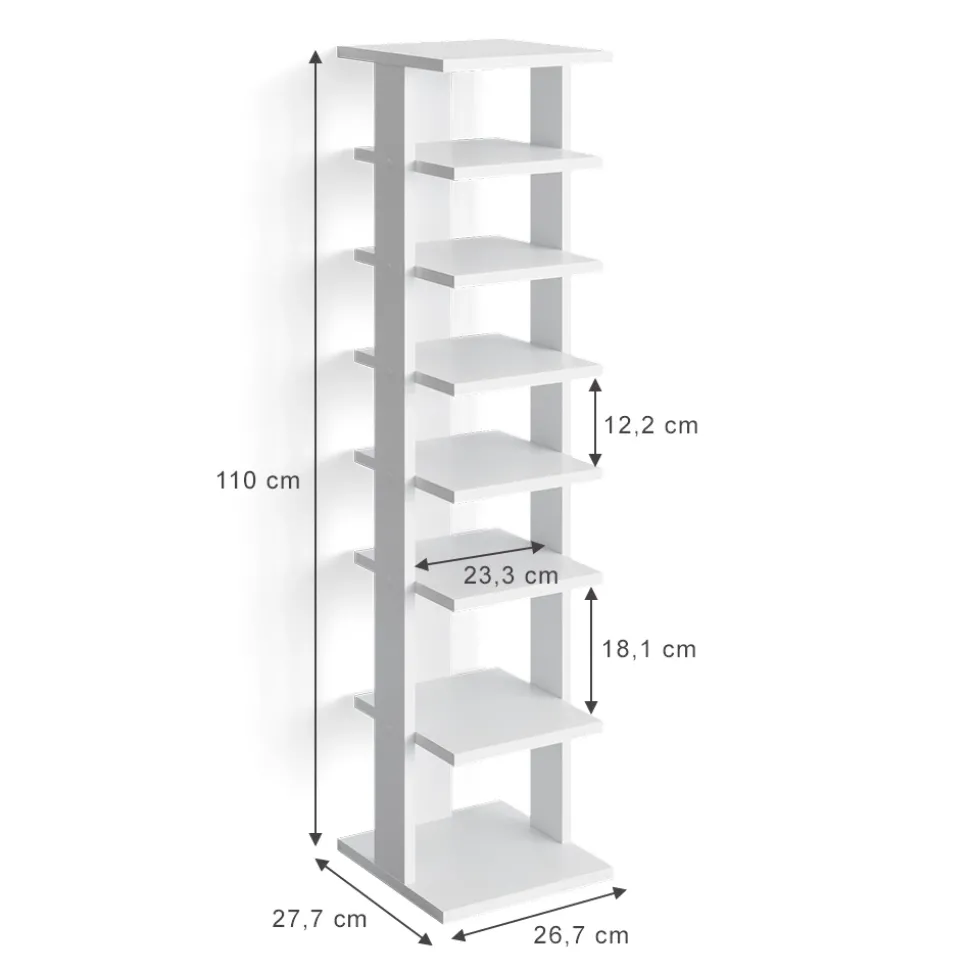 - MAßE: Das Schuhregal hat eine Breite von 26,7 cm, eine Höhe von 110 cm und eine Tiefe von 27,7 cm. Alle detaillierten Größen sind auf den Fotos angegeben.