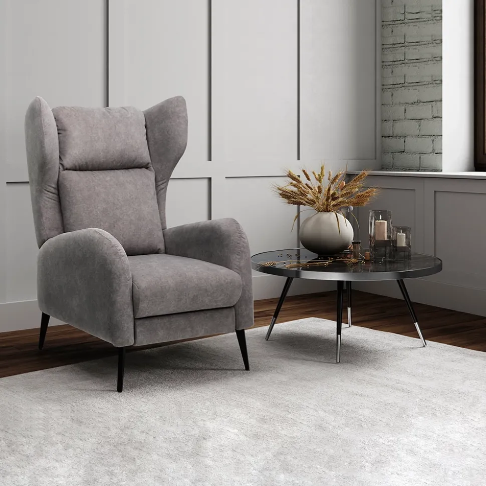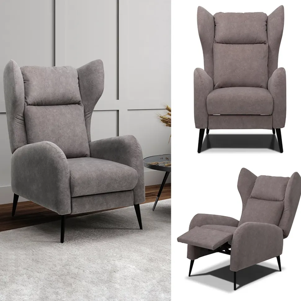 - MATERIAL: Der Relaxsessel besticht durch ein stabiles Gestell aus Holz und stilvolle Metallfüße. Das Schaumstoff-Polster ist mit einem grauen, pflegeleichten Polyesterbezug versehen.