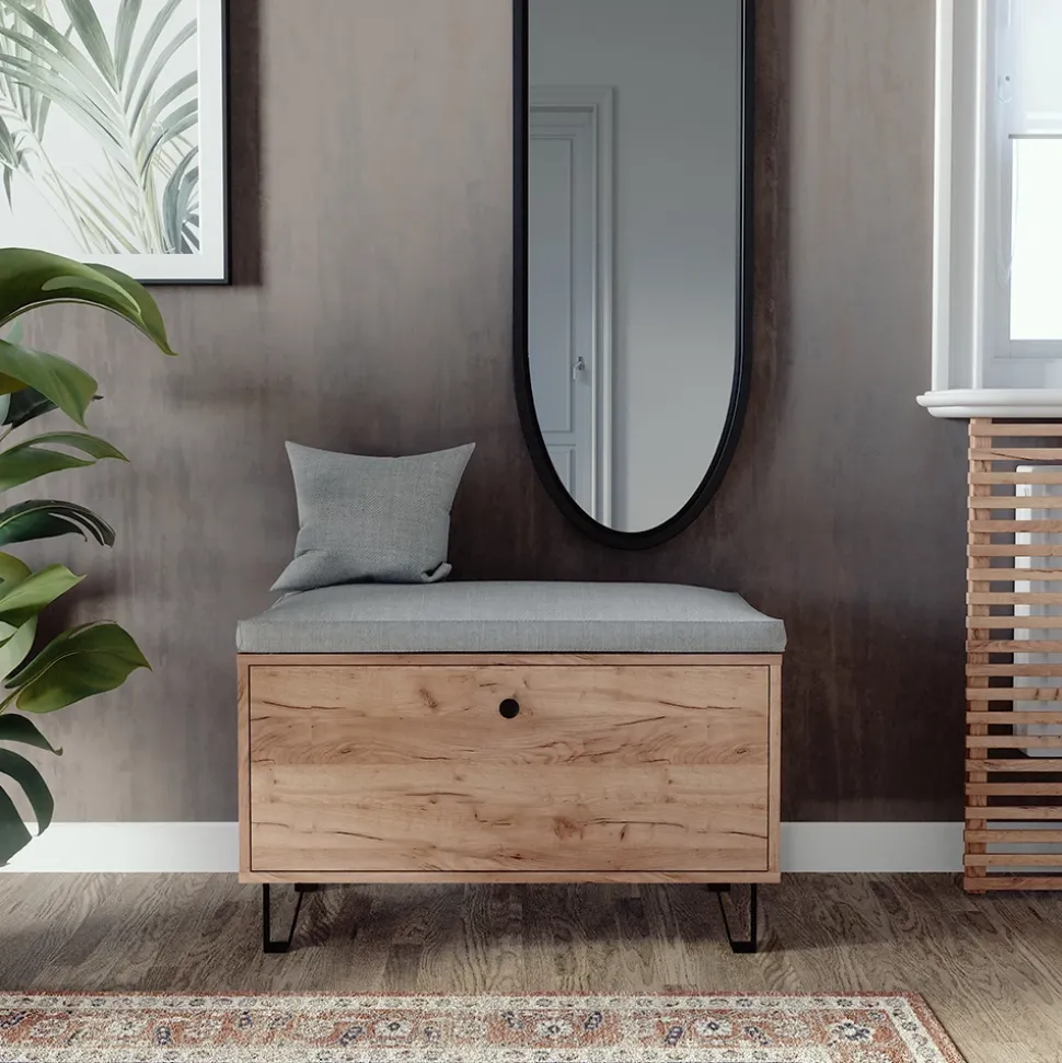 - Die Sitzbank mit Stauraum bietet praktischen Platz zum Verstauen von Gegenständen und dient gleichzeitig als gemütliche Sitzgelegenheit.