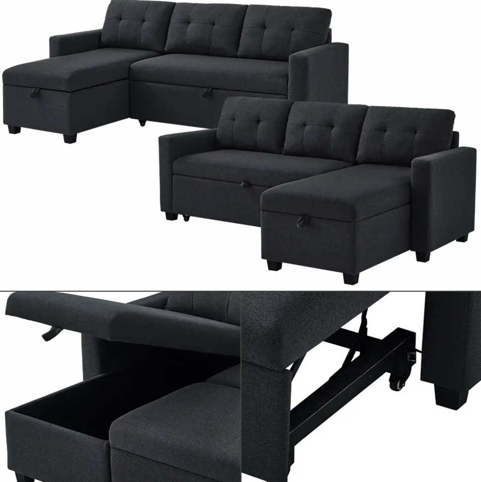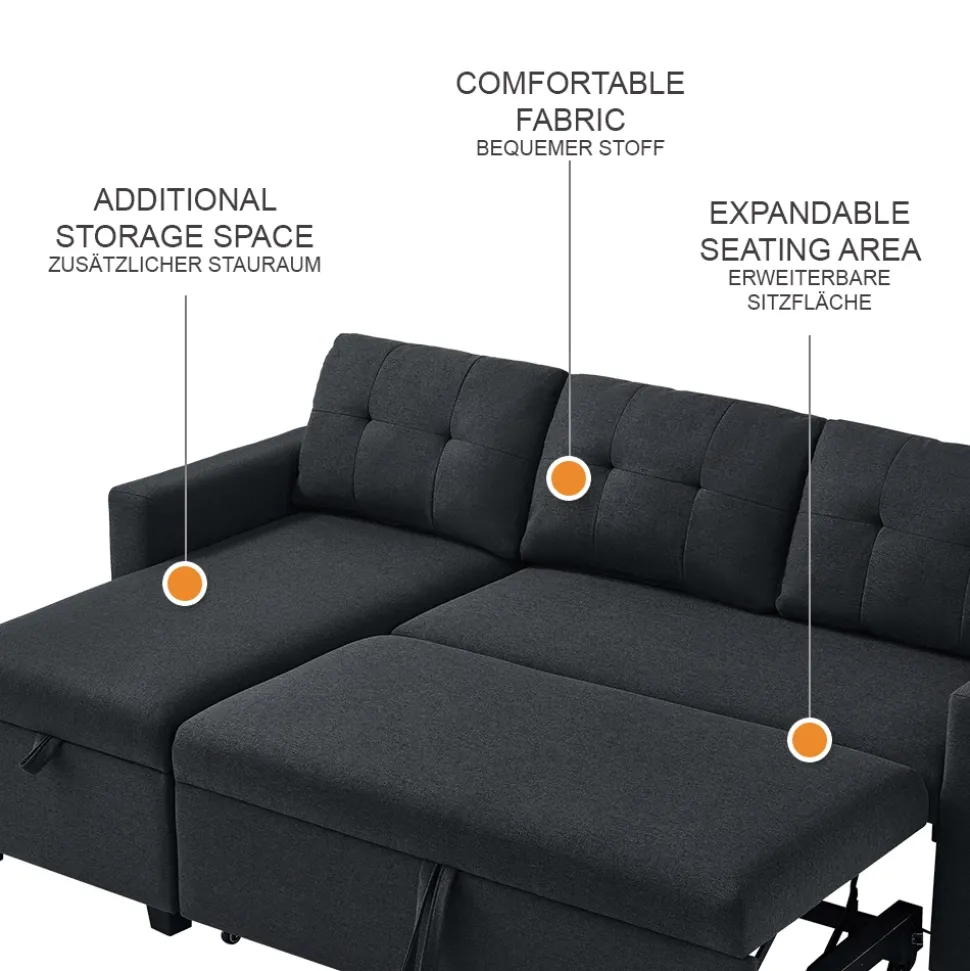 - Das Schlafsofa mit Bettkasten verfügt über eine praktische Aufbewahrungsbox und ist aus robustem Textil gefertigt. Außerdem ist es einziehbar und somit besonders platzsparend.