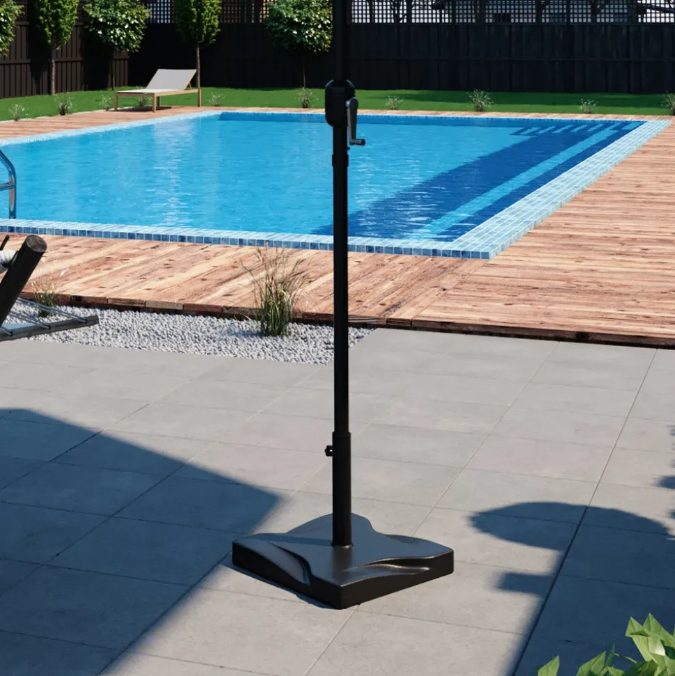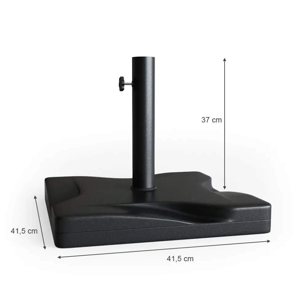 - Der Schirmfuß ist robust und wetterfest dank einer Füllung aus Betonisolierung. Eine langfristige Nutzung im Freien ist garantiert.