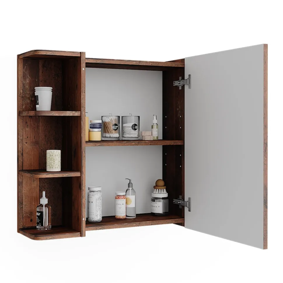 - MATERIAL: Der Badspiegelschrank besteht aus einer pflegeleichten Spanplatte mit Melaminharzbeschichtung. Einige Bestandteile des Artikels sind aus Glas gefertigt.