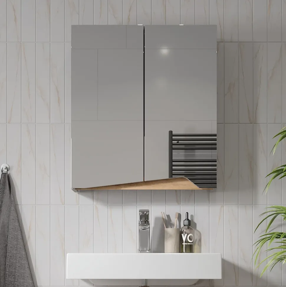 Verleihen Sie Ihrem Badezimmer mit dem Badspiegelschrank „Marelle“ eine moderne Note und profitieren Sie von praktischem Stauraum und elegantem Design in einem. Die 2 grifflosen Spiegeltüren verleihen dem Schrank eine schlichte Eleganz, während der Einlegeboden ausreichend Platz für Ihre Pflegeprodukte bietet. Kombinieren Sie den Badezimmerschrank mit anderen Artikeln der Marelle Serie und schaffen Sie eine harmonische Atmosphäre in Ihrem Badezimmer. Gönnen Sie sich diesen luxuriösen Spiegelschrank und machen Sie Ihr tägliches Pflegeritual zu einem besonderen Erlebnis.