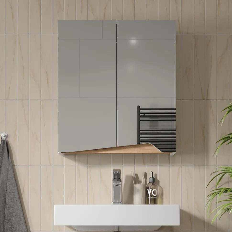 - Der Badezimmerspiegel besticht durch sein kompaktes und modernes Design sowie praktische Spiegeltüren, die das Produkt besonders funktional und ansprechend machen.