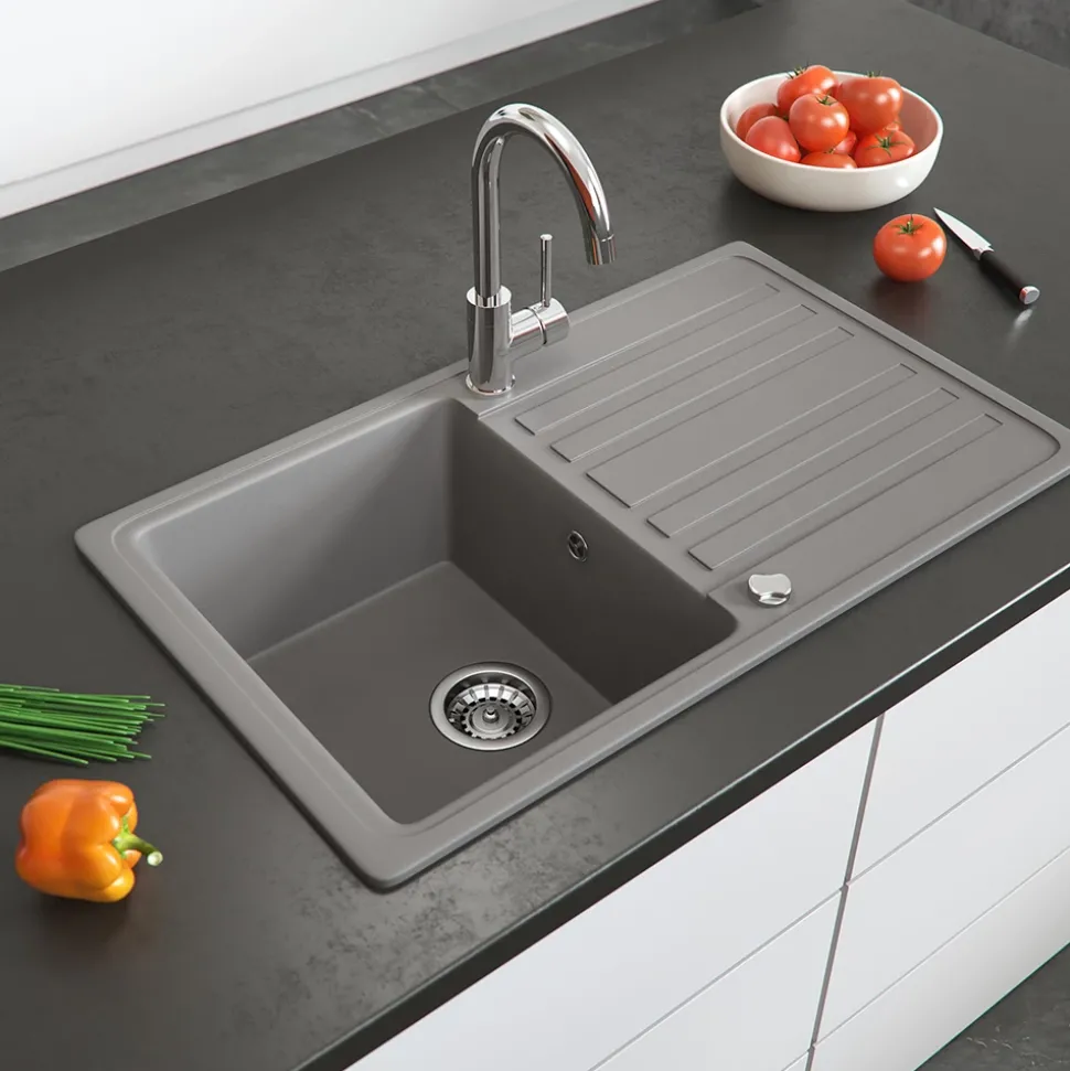 - Die Spüle aus Granit mit abtropfflügel ist widerstandsfähig gegen Chemikalien und stoßsicher, ideal für eine langlebige und robuste Küchenausstattung.