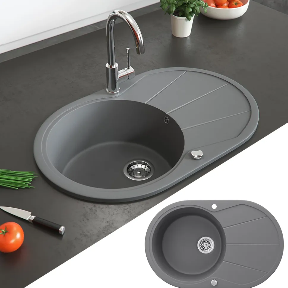 - Die Spüle aus Granit verfügt über einen abtropfflügel und ist widerstandsfähig gegen Chemikalien und Stöße – beste Funktionalität für die Küche!