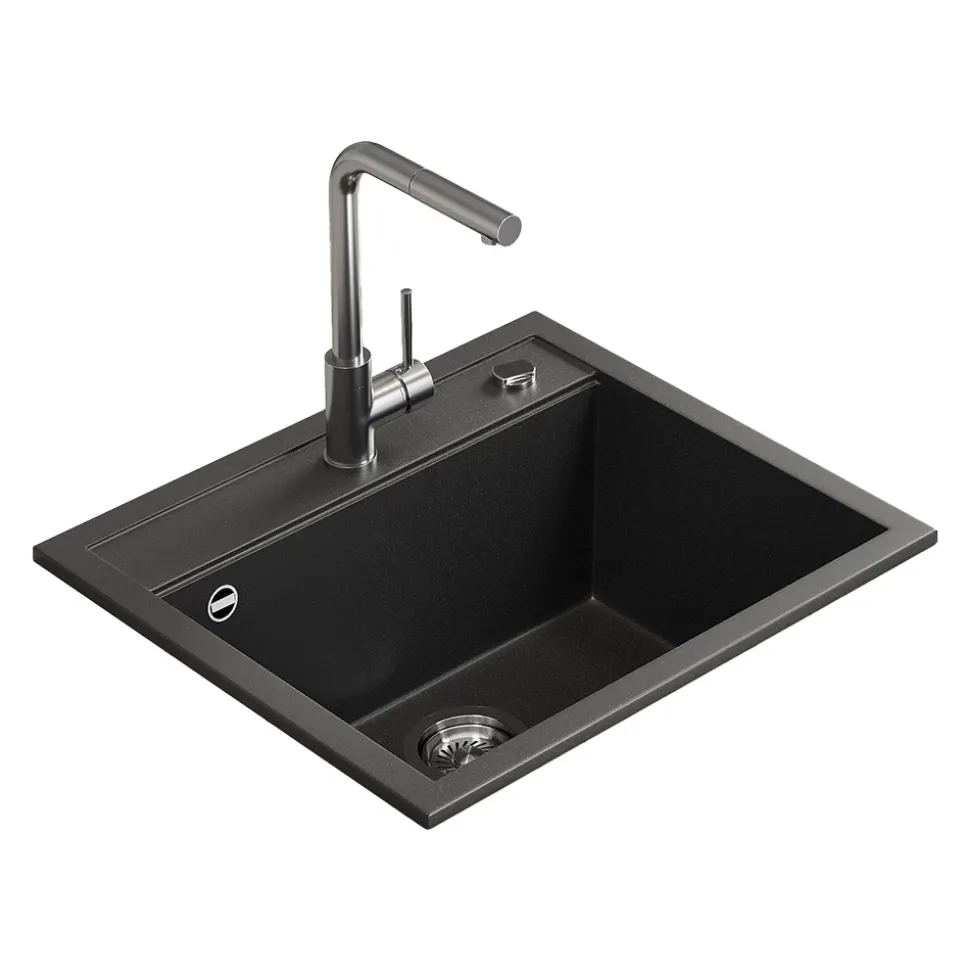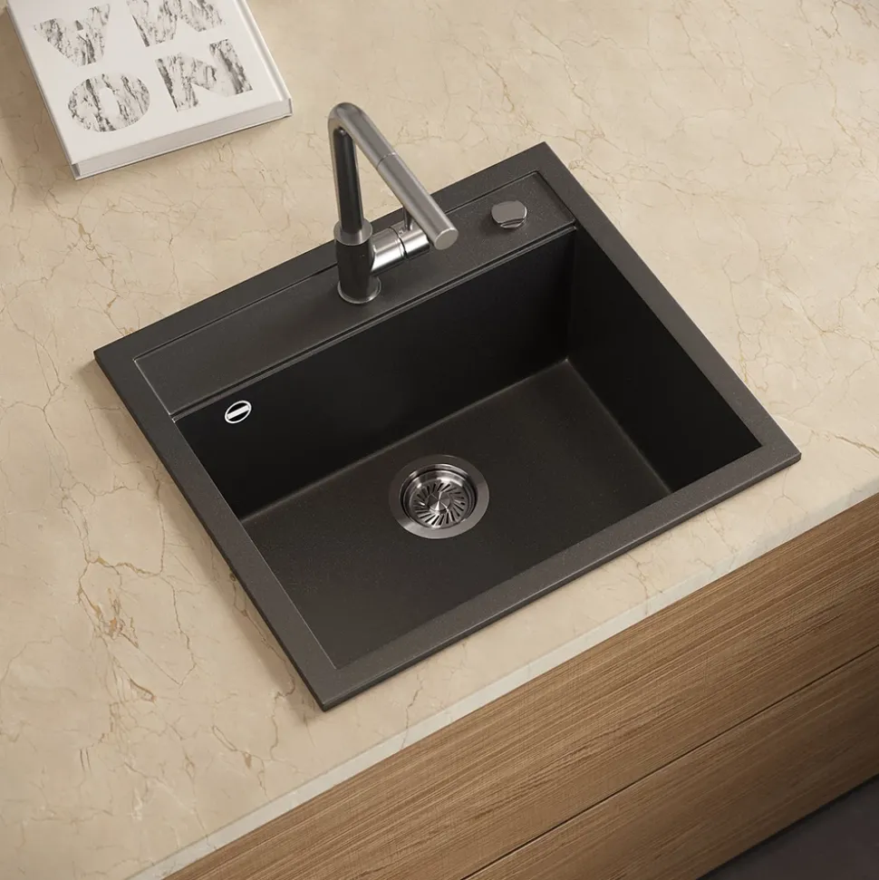 - MATERIAL: Das Spülbecken besteht zu 80 % aus Quarz und 20 % aus speziellen Harzen, was eine pflegeleichte, robuste und langlebige Oberfläche gewährleistet.