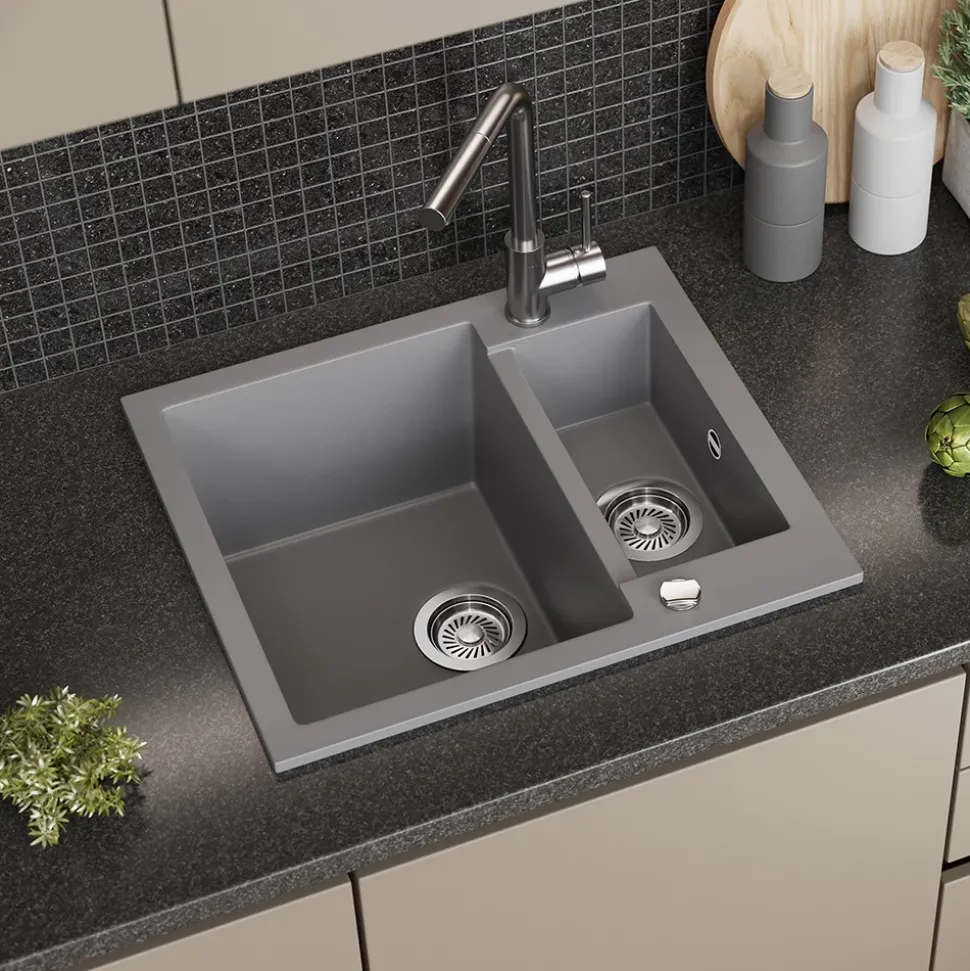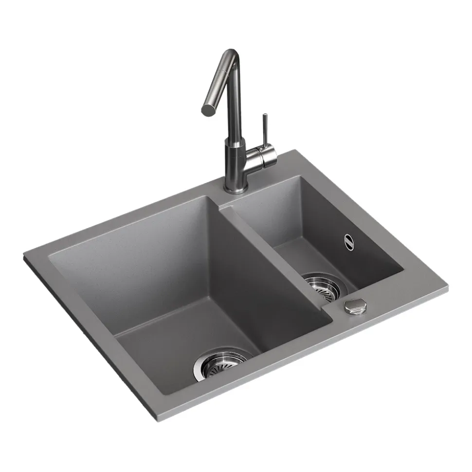 - MATERIAL: Das Spülbecken besteht zu 80 % aus Quarz und 20 % aus speziellen Harzen, was eine pflegeleichte, robuste und langlebige Oberfläche gewährleistet.